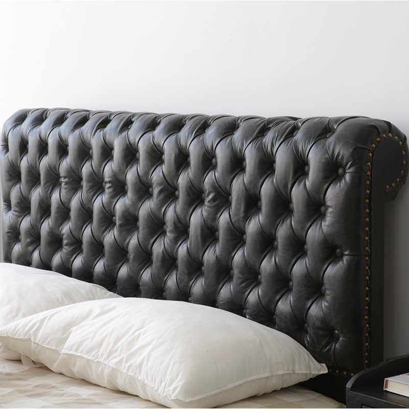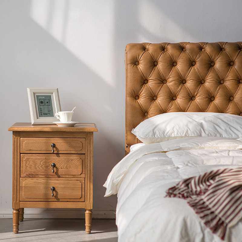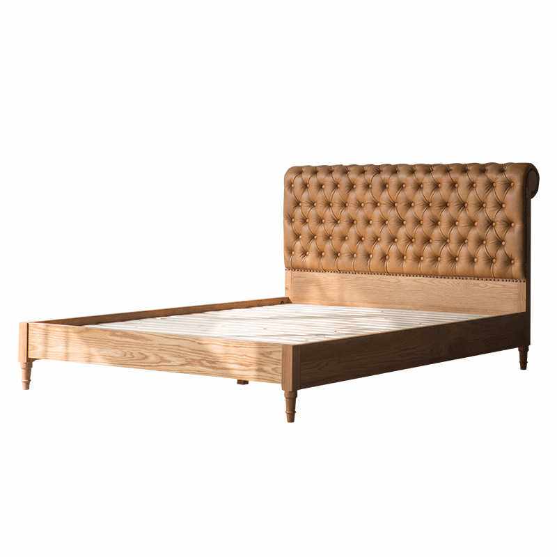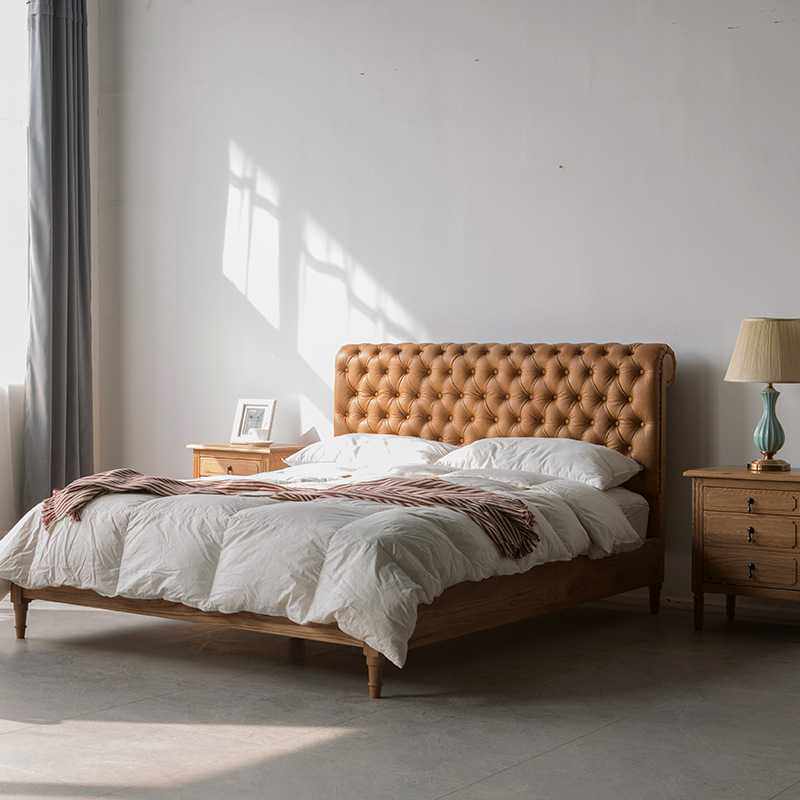 北欧轻奢1.8m双人床 美式皮艺实木拉扣床 样板间简约现代复古婚床
