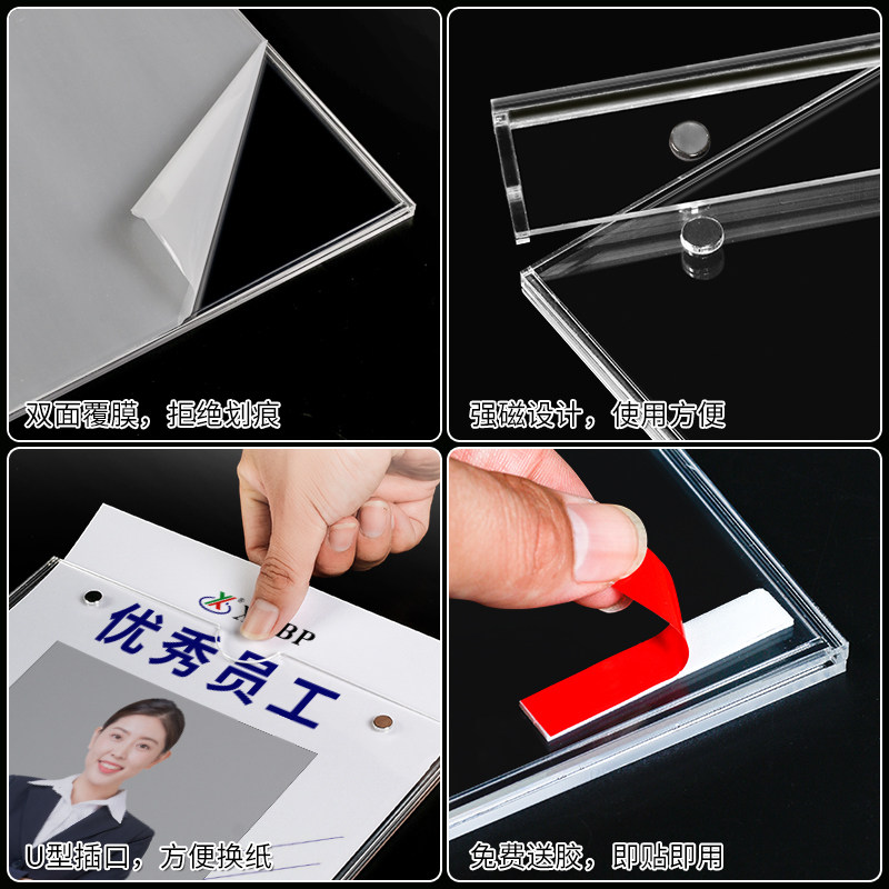 亚克力卡槽A4防水防尘插槽插纸盒透明展示牌文件盒员工宣传栏荣誉栏公示栏强磁吸附有机玻璃卡槽资料架定制