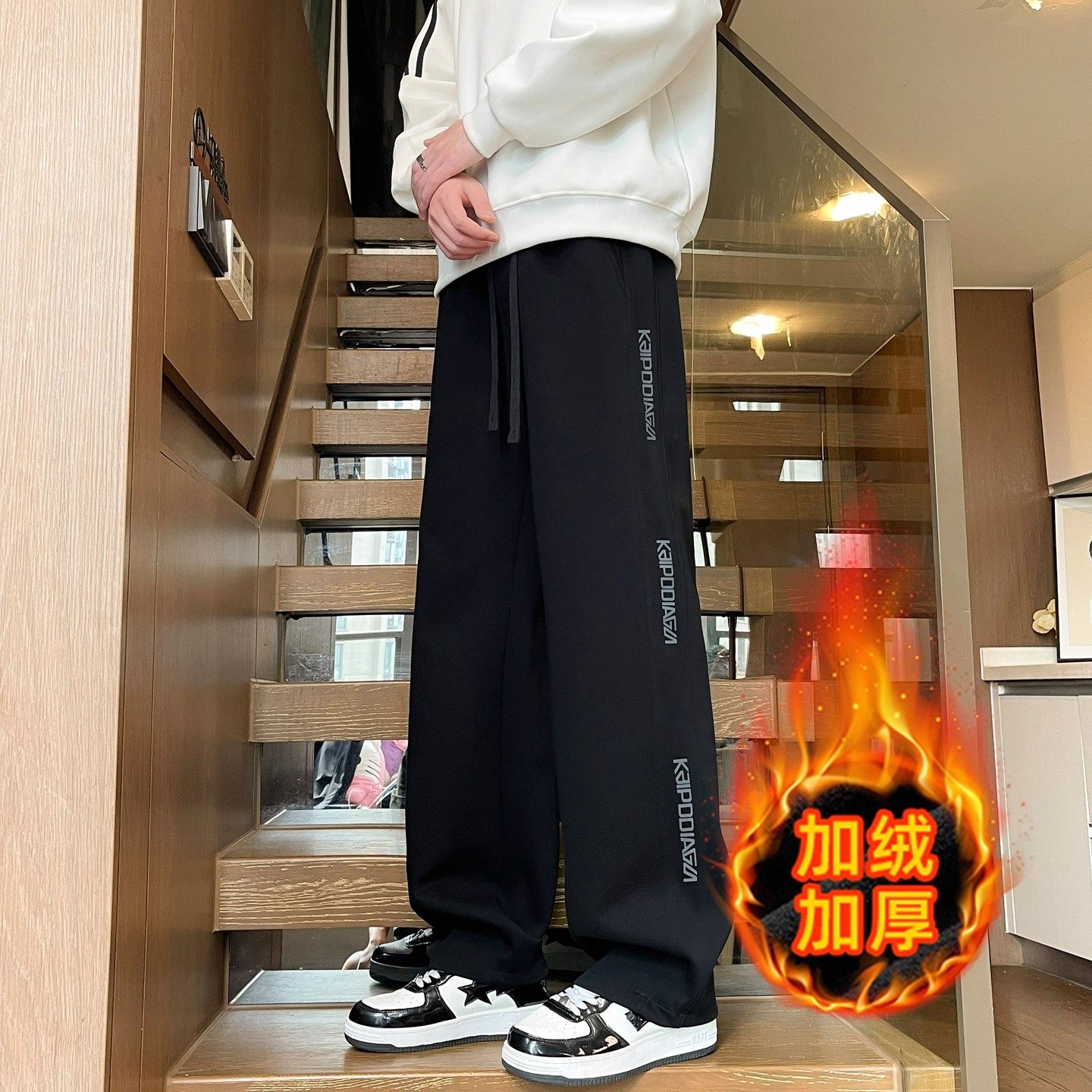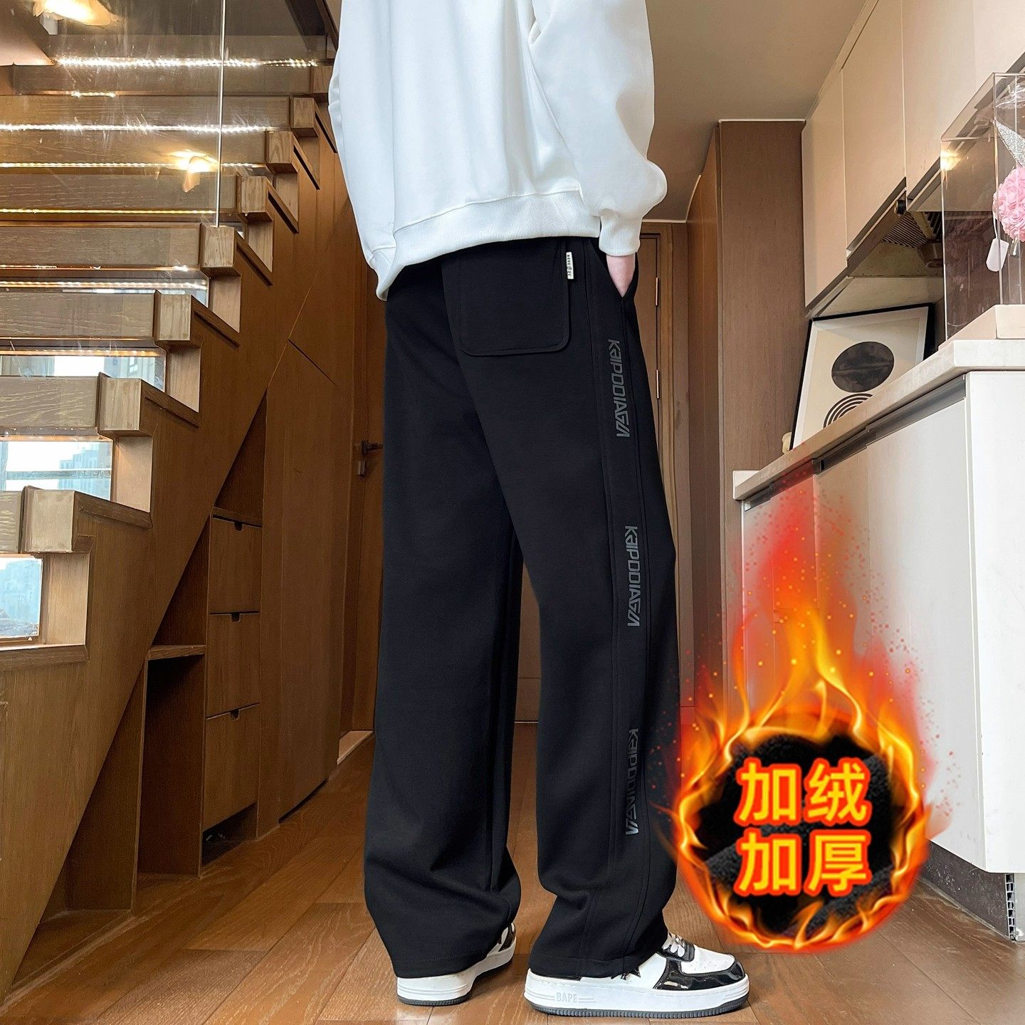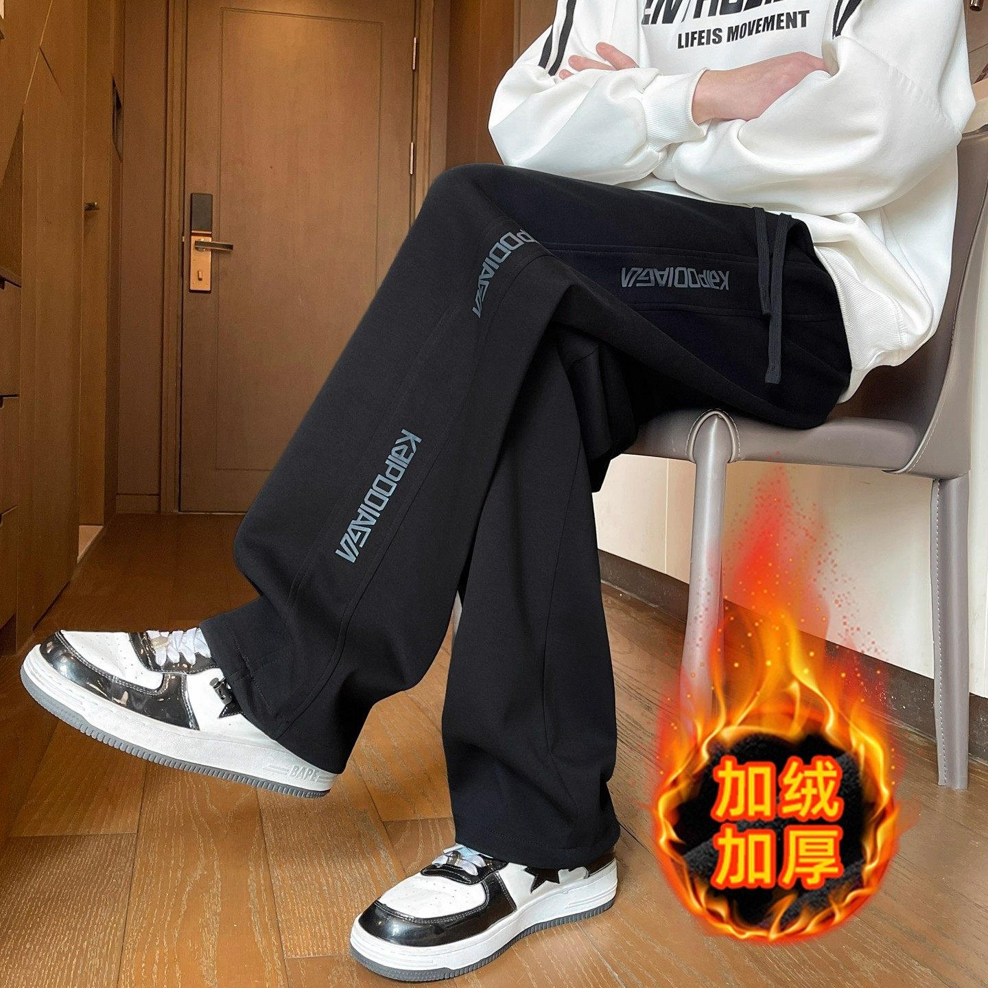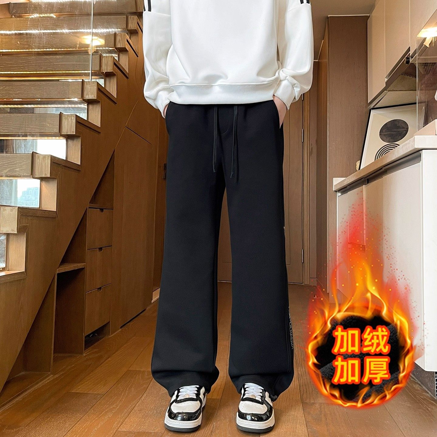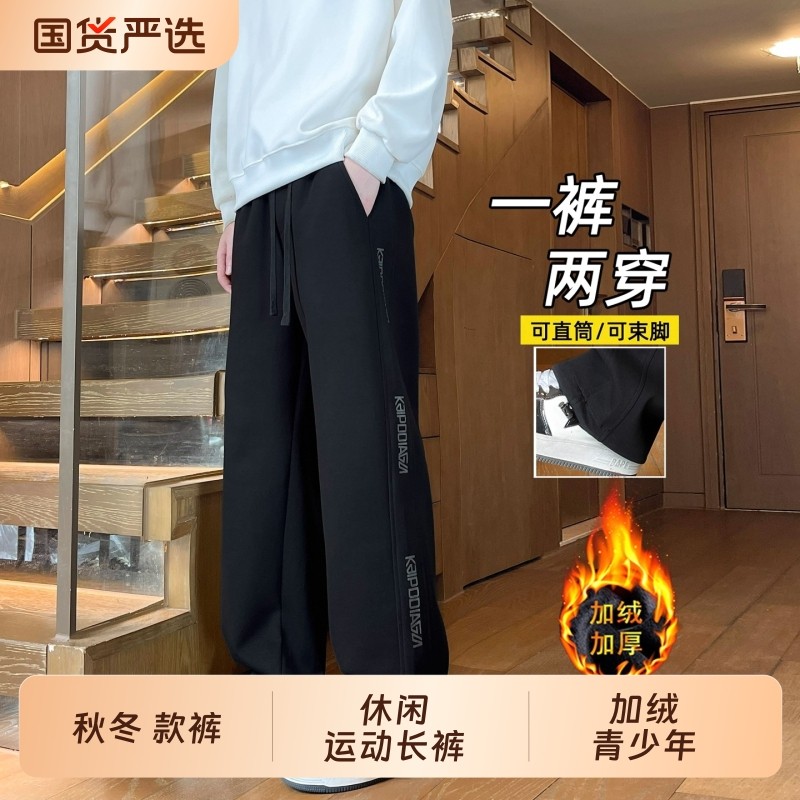 秋冬款裤子男孩初中高中学生加绒加厚青少年大童直筒休闲运动长裤