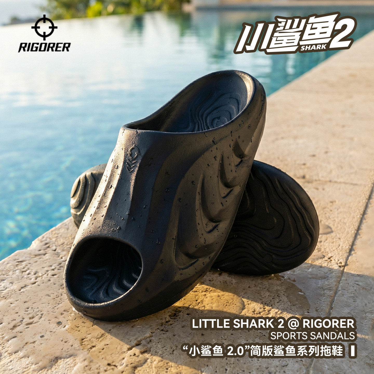 准者沙滩拖鞋小鲨鱼2.0夏季防滑舒适软弹游泳户外亲子抗菌凉拖鞋