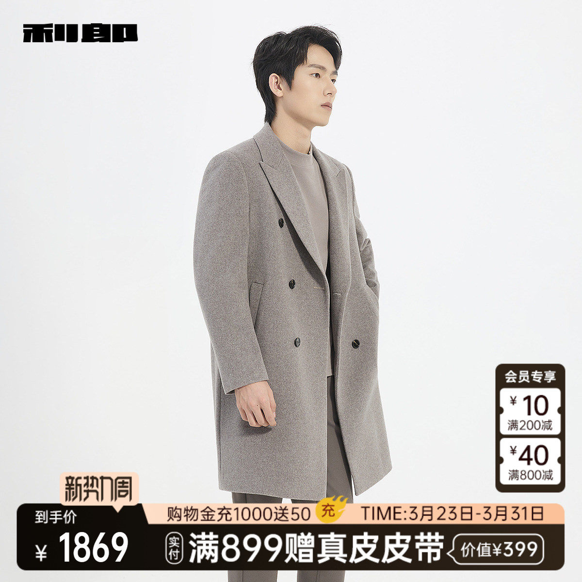 【商场同款】利郎含山羊绒戗驳领毛呢大衣25冬男装外套25DYR1621Y