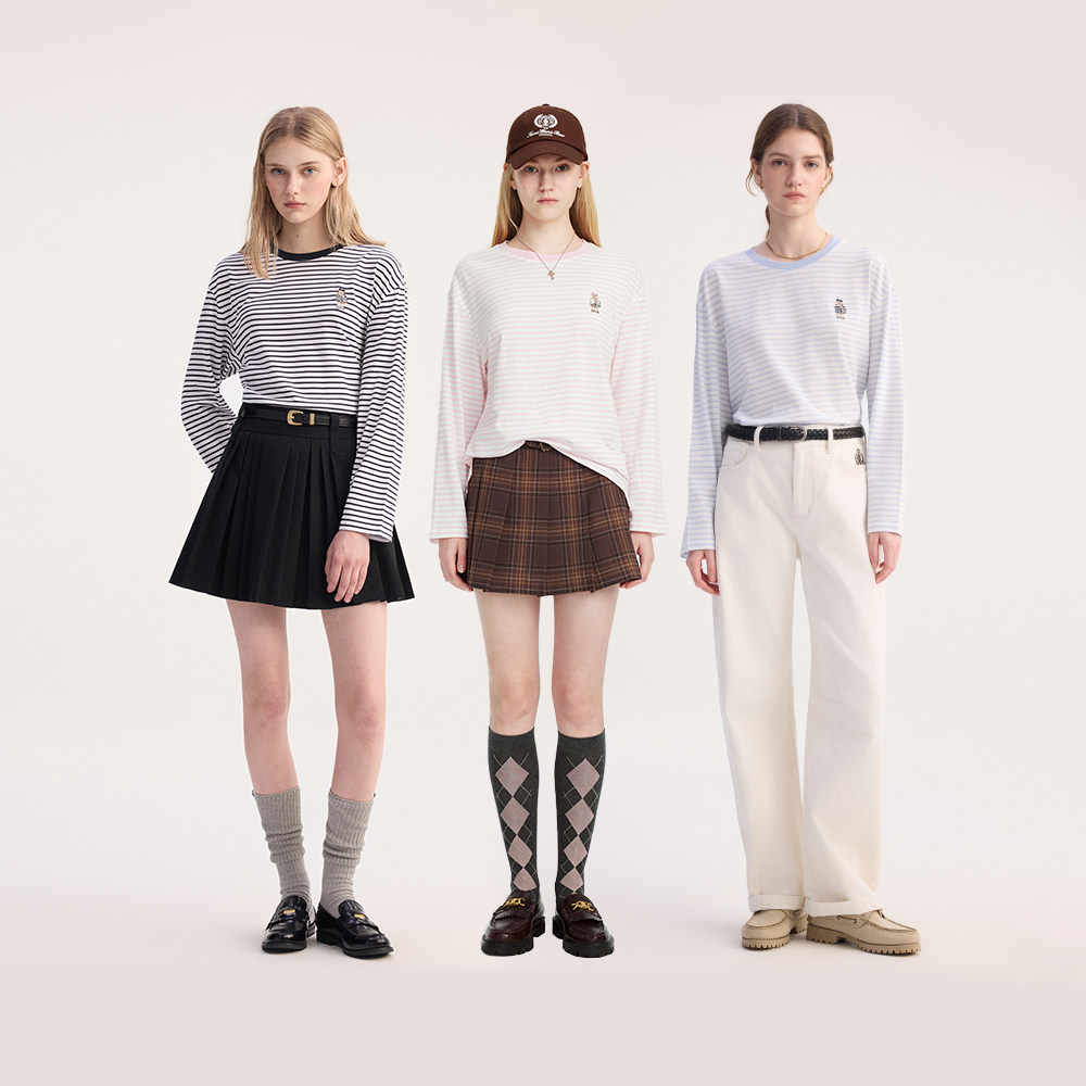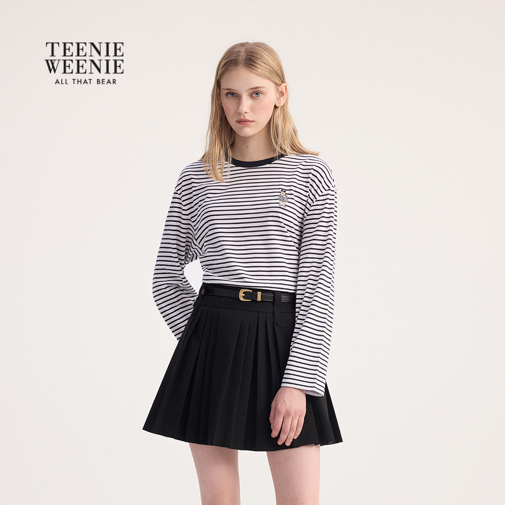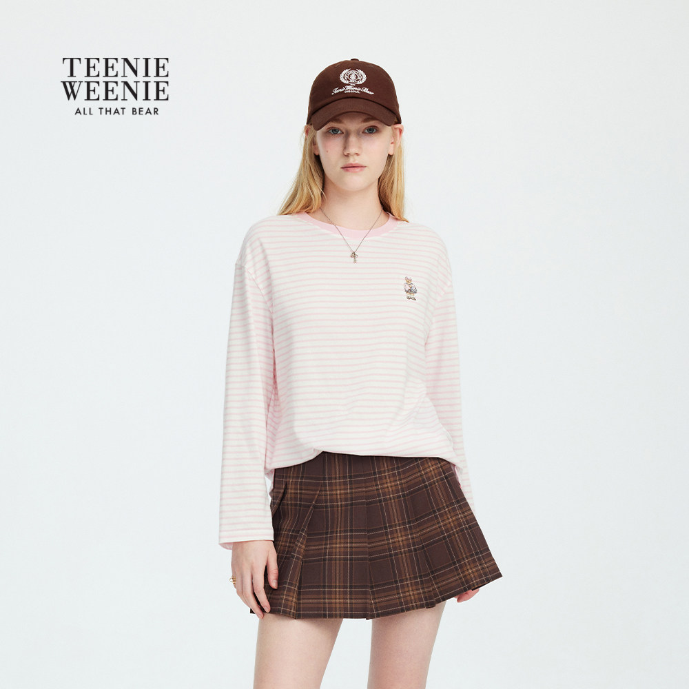 TeenieWeenie小熊女装T恤2025秋季新款休闲清爽盐系条纹长袖上衣