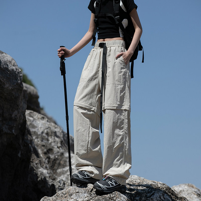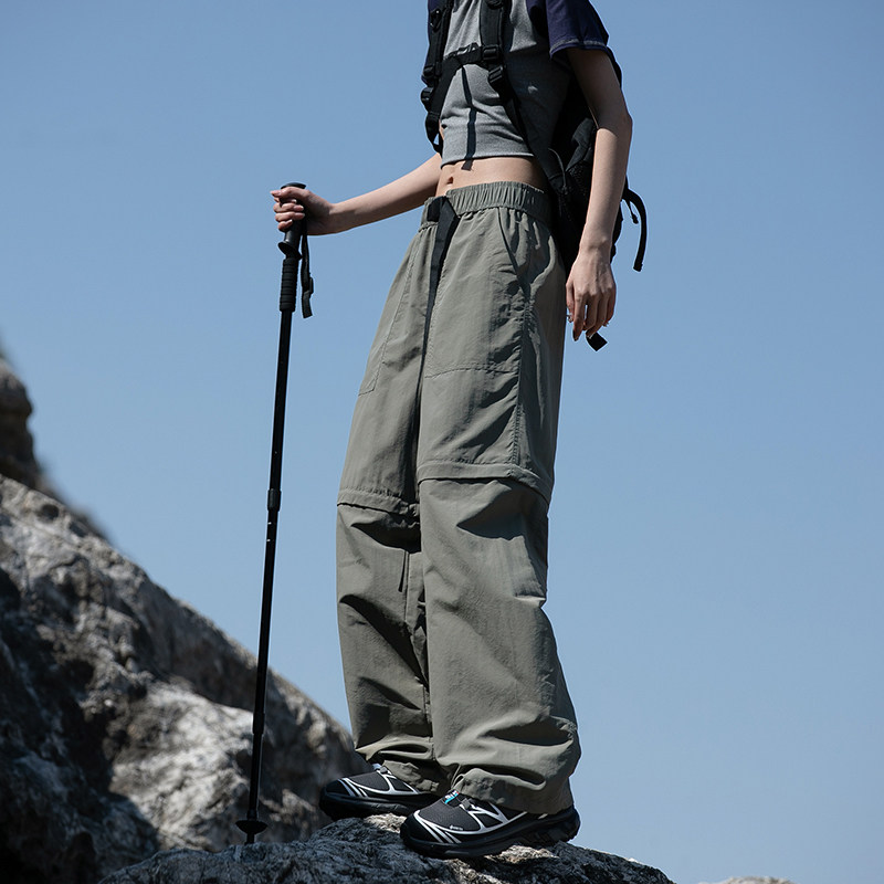 回力可拆卸冲锋裤子男士夏季薄宽松直筒男生伞兵工装冰丝休闲长裤