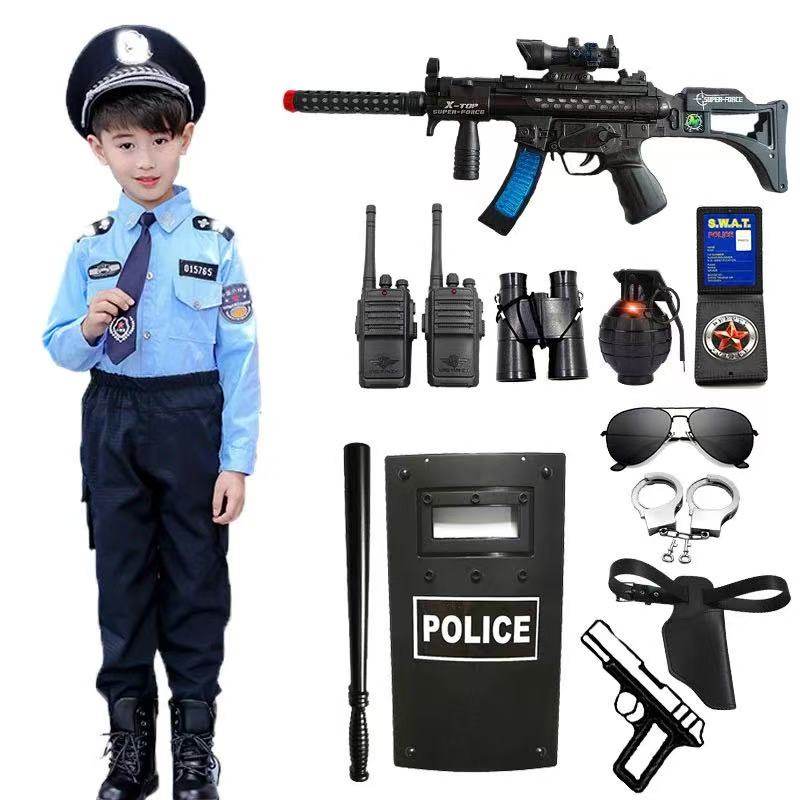儿童玩具枪电动声光警服角色扮演警察装衣服男童小保安帽子对讲机