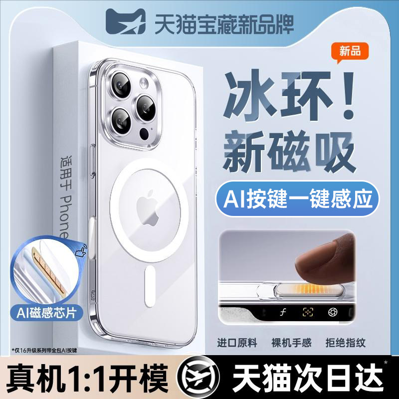 铂信新款磁吸适用苹果17ProMax手机壳iphone16透明散热17pro保护套15超薄14防摔magsafe硬壳女男13AI按键全包