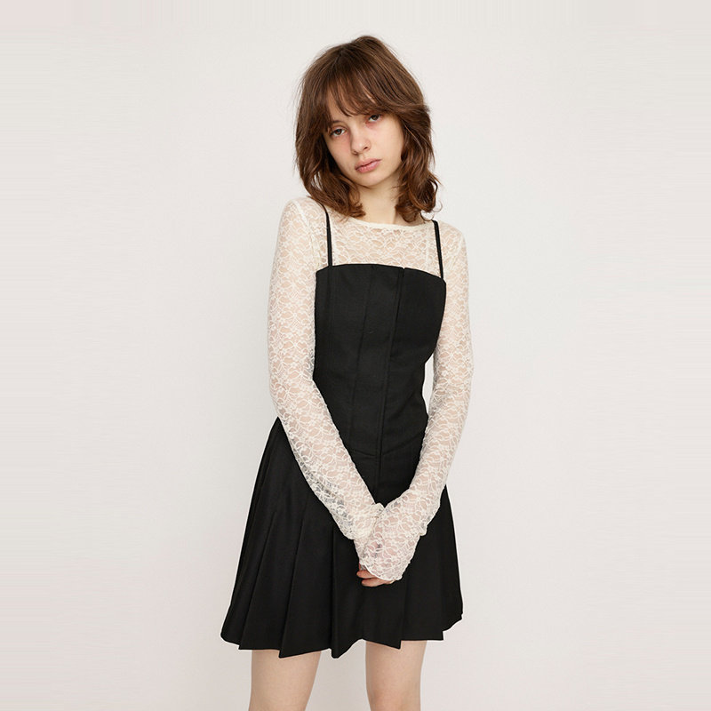 SLY 冬季新品法式赫本风多穿法百褶吊带连衣裙030HAR33-5761