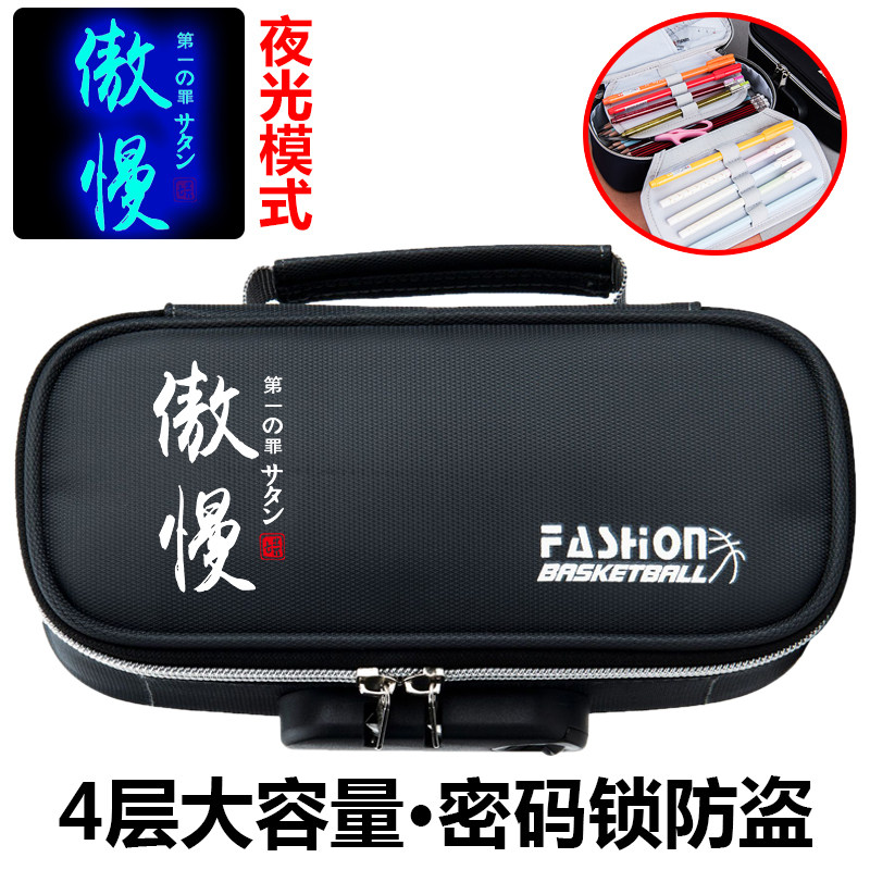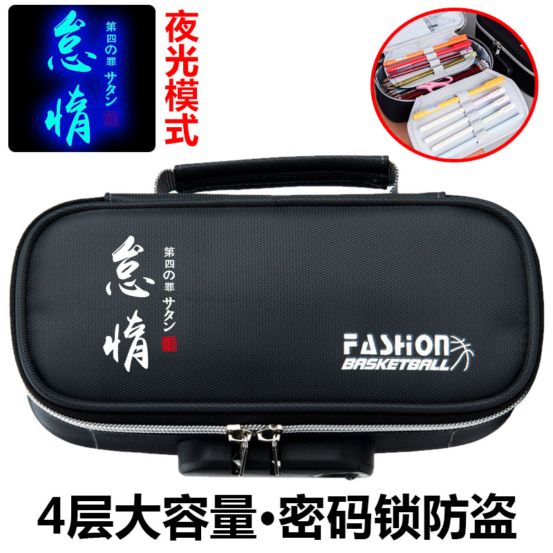 夜光卡通动漫笔袋男密码锁大容量4层铅笔盒初中小学生文具盒鸣人