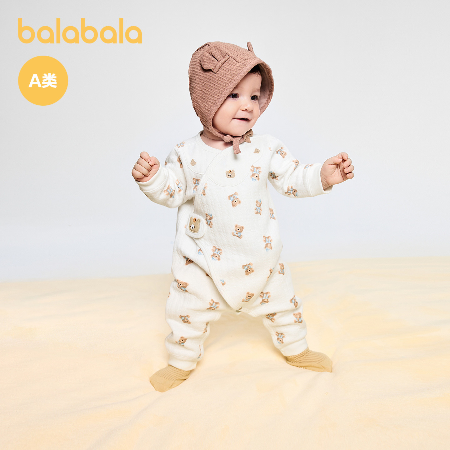 婧麒新生儿婴儿衣服秋冬夹棉满月纯棉初生宝宝秋装连体衣a类爬服