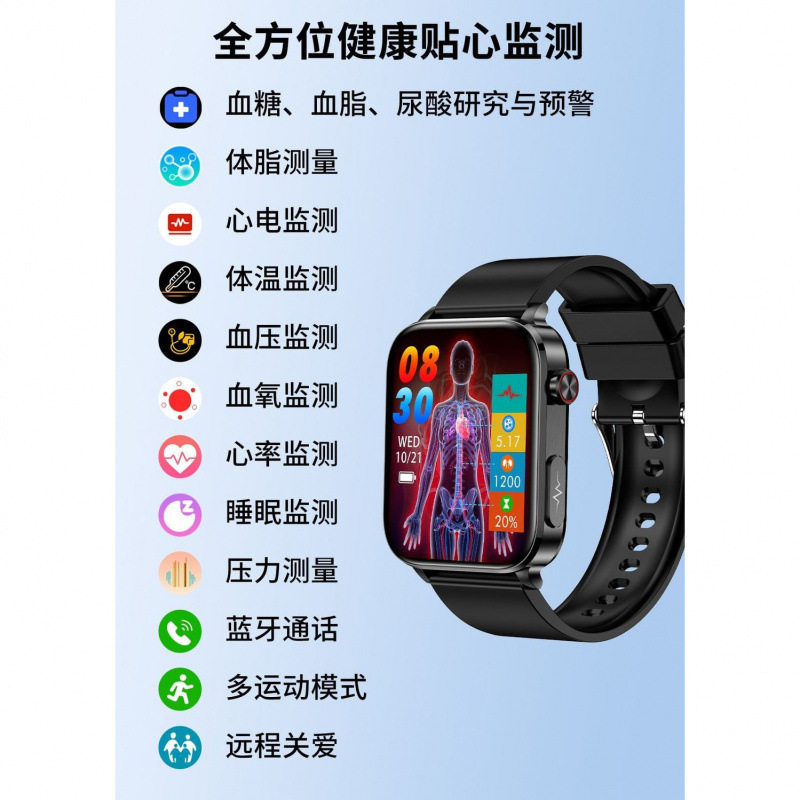 三高监测手表血糖血压监血脂心率血氧心电睡眠运动腕表预警尿酸测量动态检测防水监控电话测试连接健康蓝牙