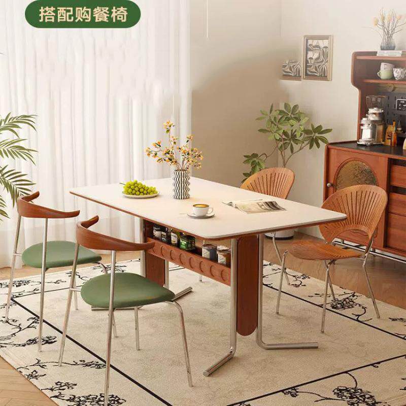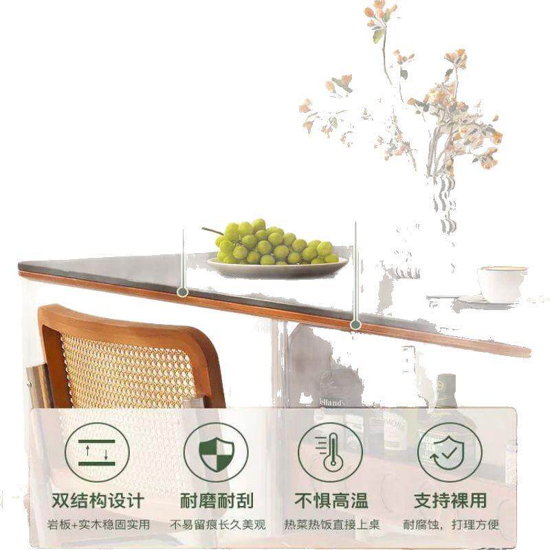 复古岩板餐桌长方形桌北欧小户型家用中古组合原木实木饭桌餐桌椅