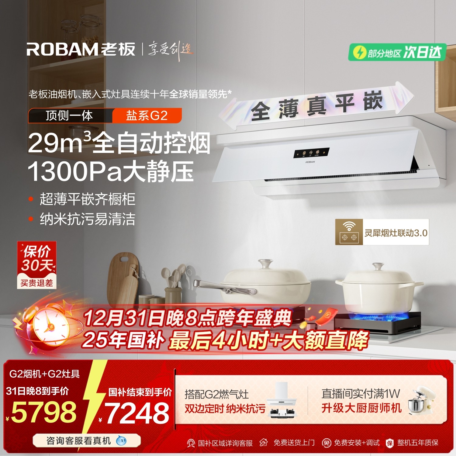 老板盐系G2顶侧一体大吸力油烟机家用燃气灶套装官方旗舰店正品