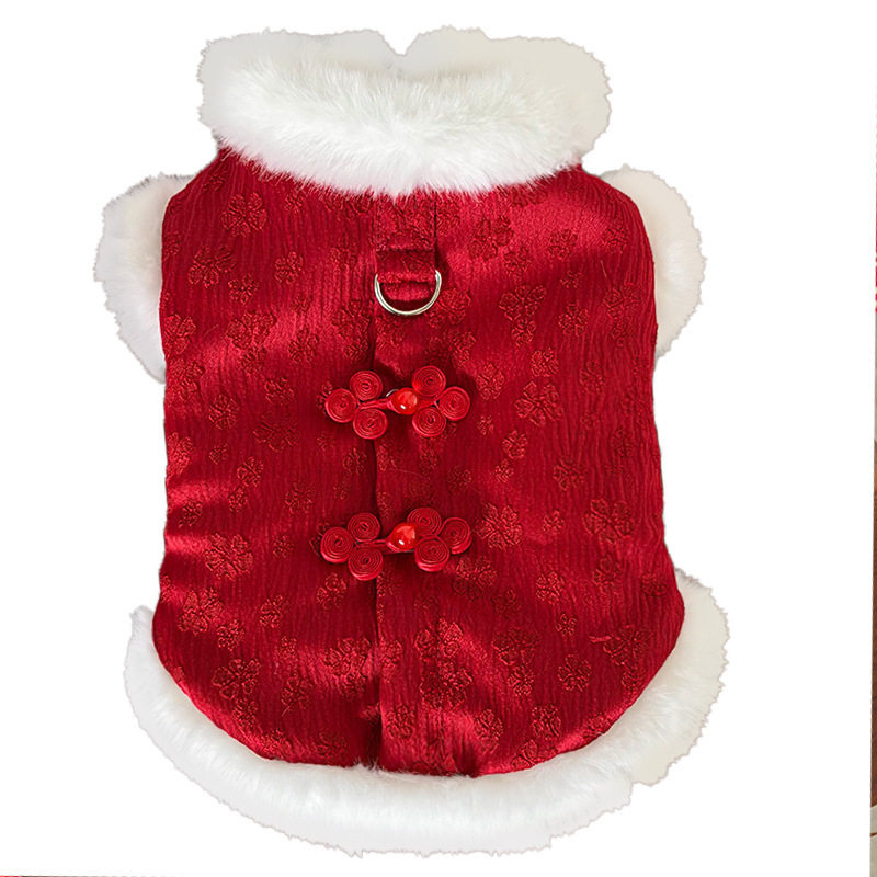 新年加绒秋冬国风提花马甲加厚宠物狗狗猫咪衣服饰用品比熊泰迪