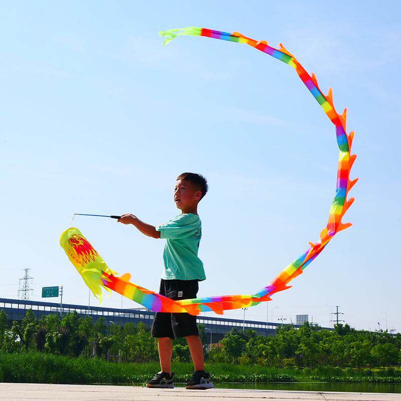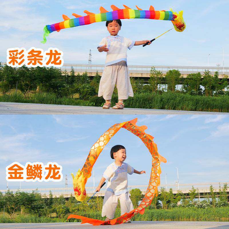 儿童舞龙彩带健身发光舞龙伸缩杆彩条龙小孩专用手甩龙空竹龙道具