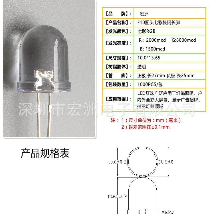 f10高亮发光二极管 10MM圆头无边绿灯 LED灯珠10mm