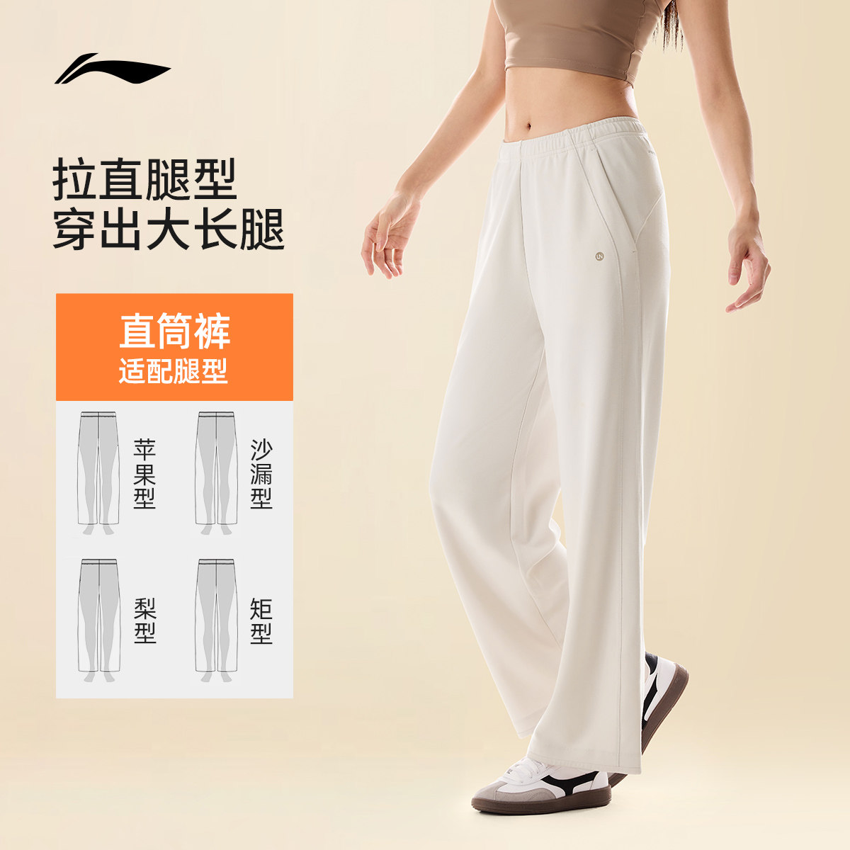 李宁奶芙裤丨阔腿裤直筒裤子女2026新款夏季薄款宽松卫裤运动长裤