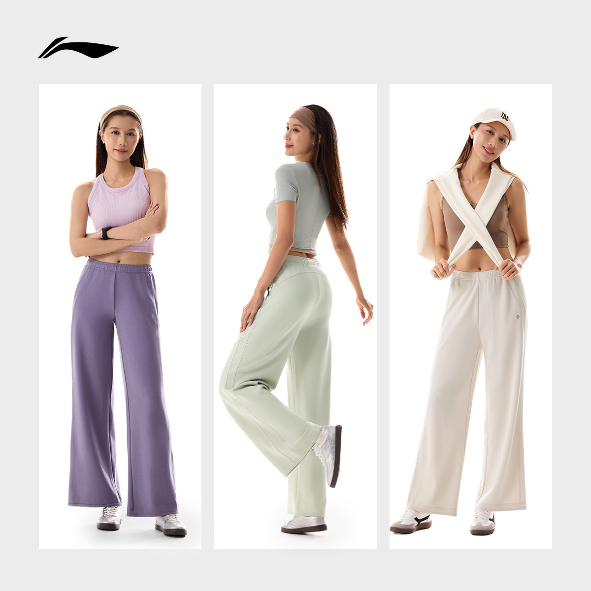 李宁奶芙裤丨2026新款卫裤女直筒宽松休闲长裤阔腿裤子针织运动裤