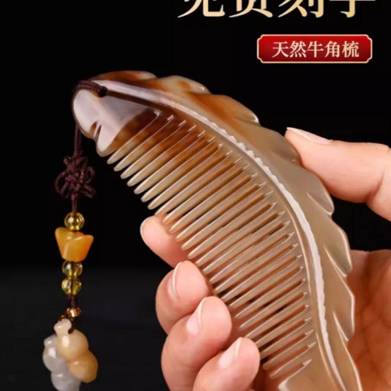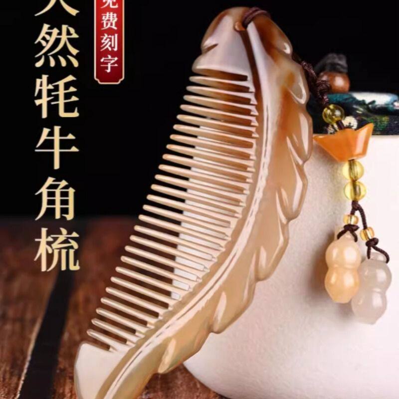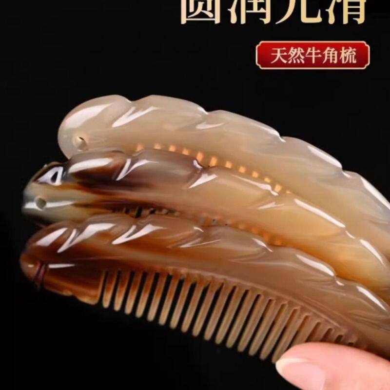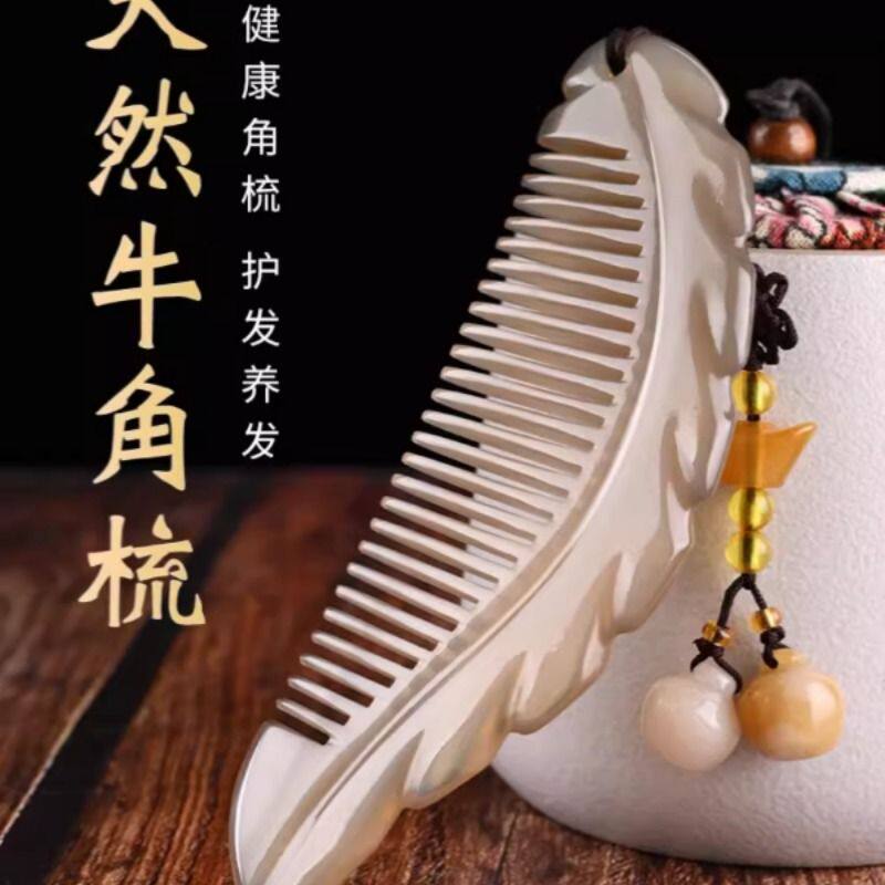 牛角叶子梳子天然头部经络梳按摩梳长发便携生日礼物高级感