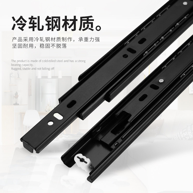 【定制】三节轨加厚加长抽屉轨道缓冲阻尼静音导轨橱柜键盘托滑轨