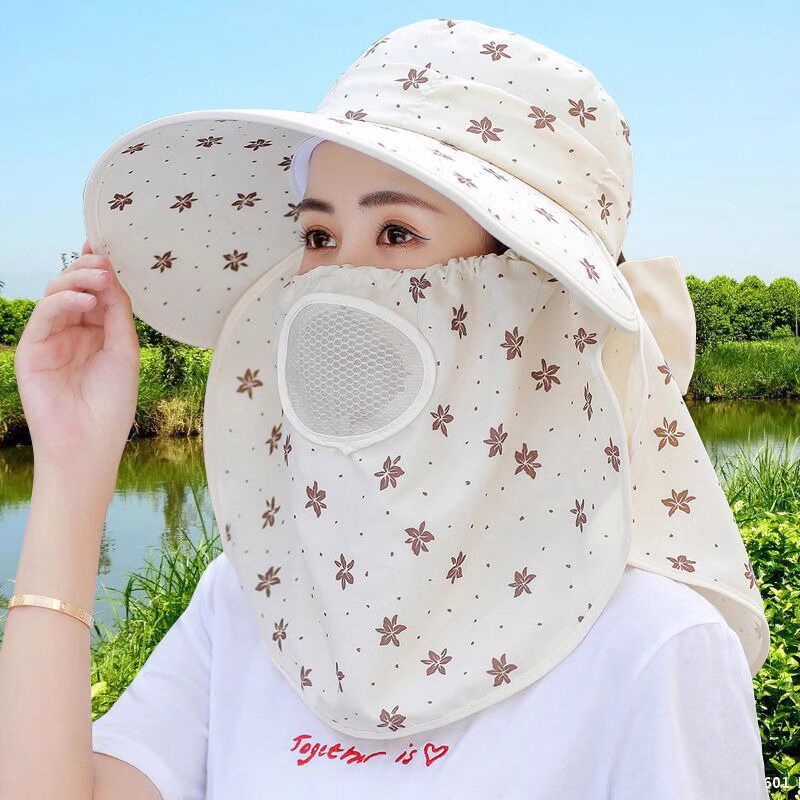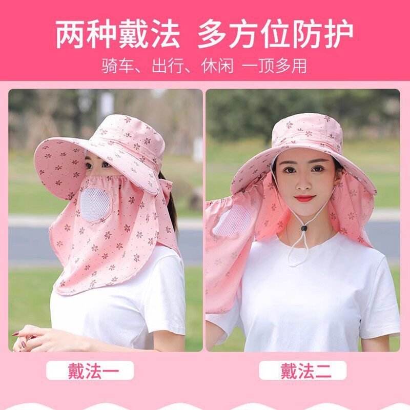 采茶帽春夏款骑车遮阳帽女士防晒护颈透气太阳帽面罩一体防风白色