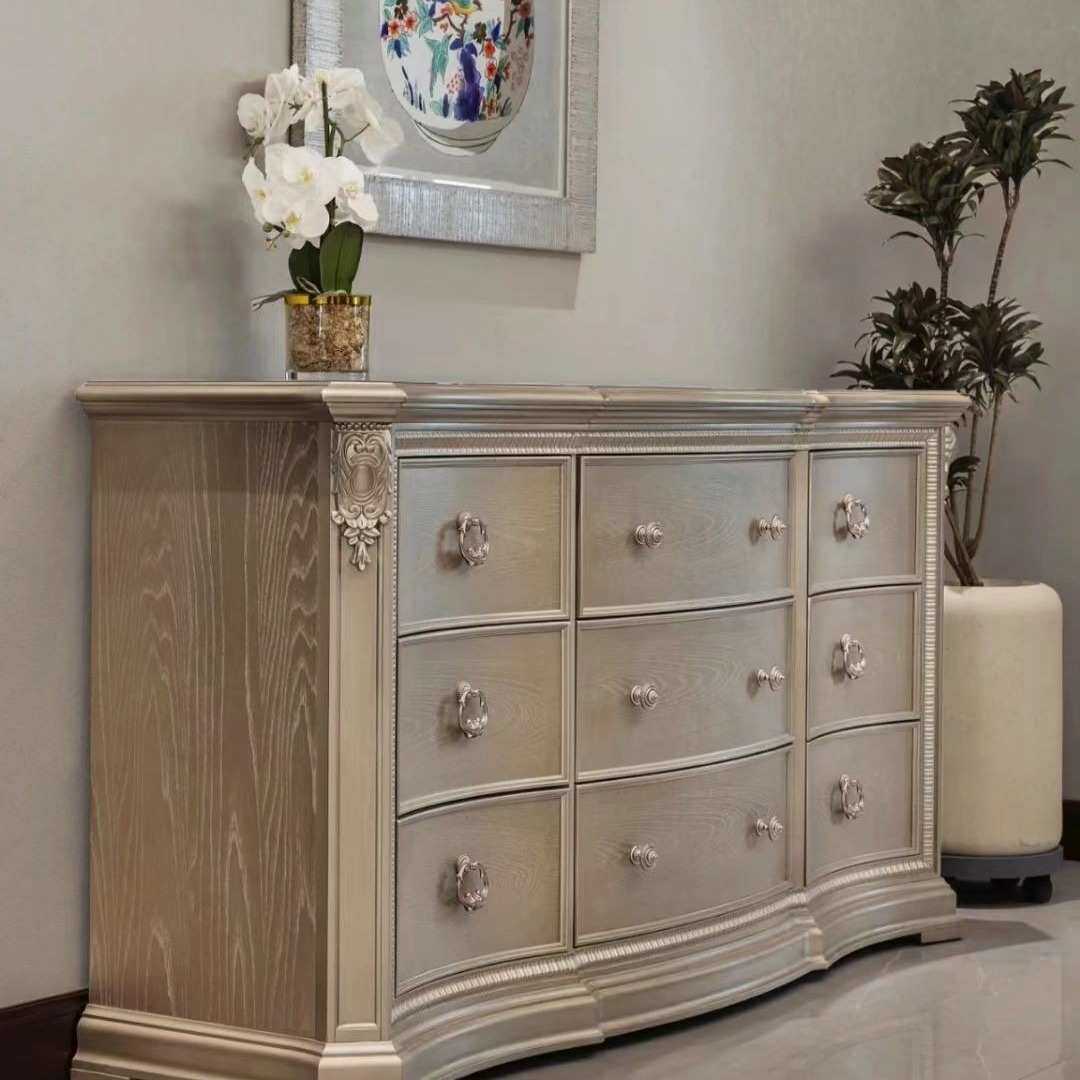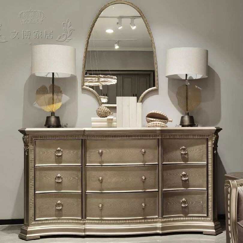 美式实木九斗柜欧式复古玄关柜雕花餐边柜储物柜卧室做旧门厅柜