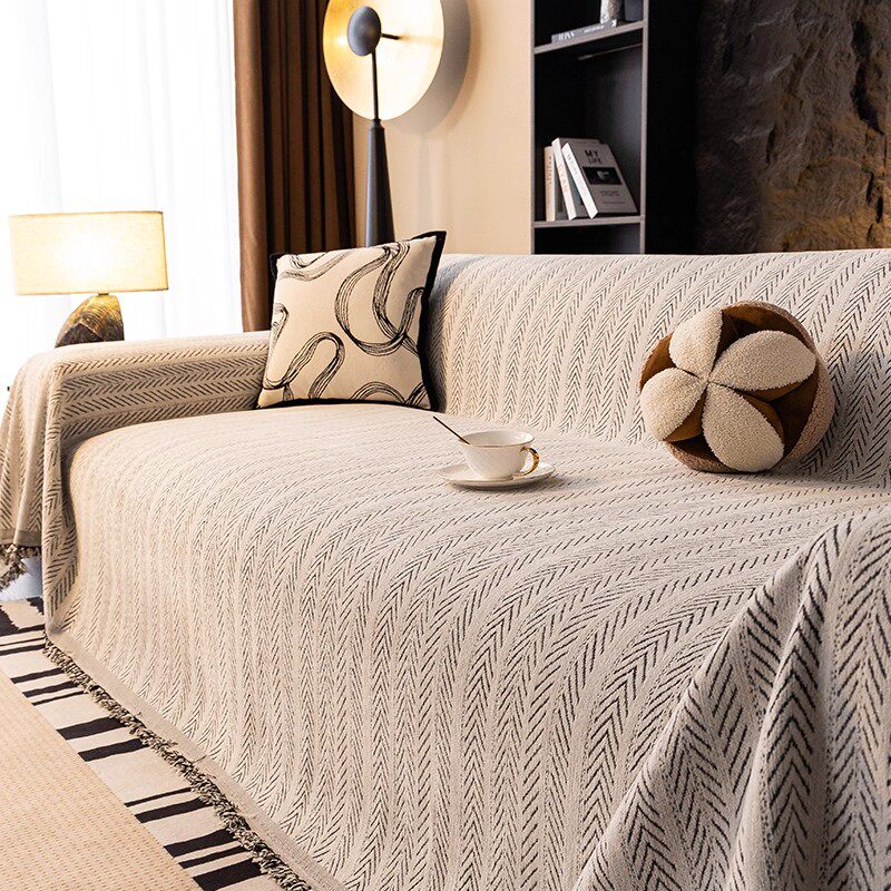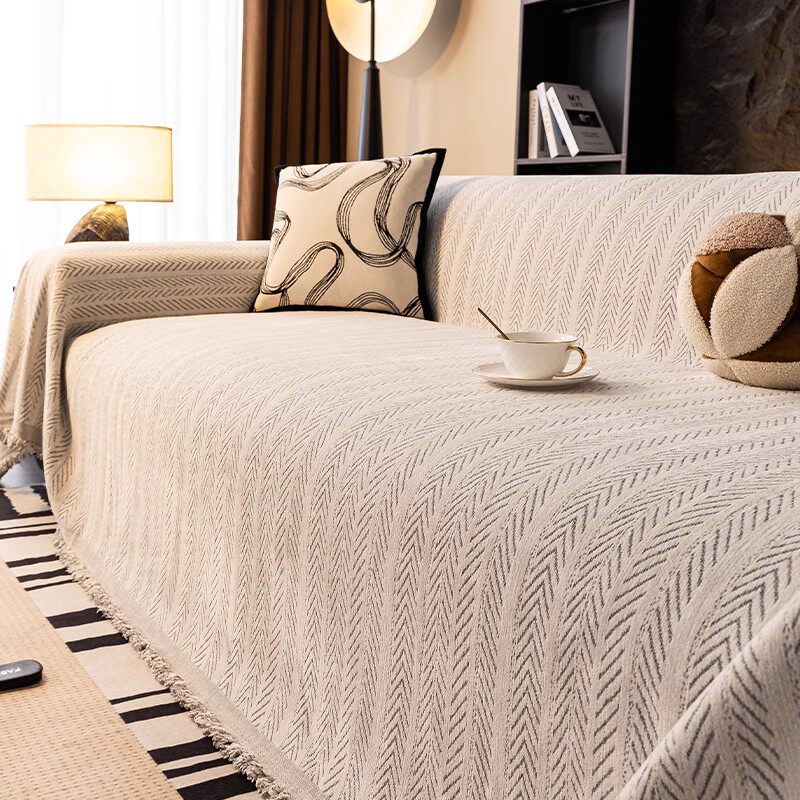 2025新款鱼骨纹雪尼尔沙发巾沙发盖布四季通用全包坐垫套罩盖毯子