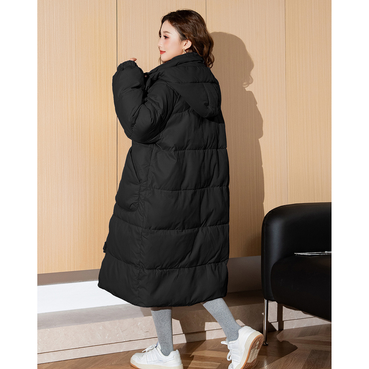 唐狮冬季新款女棉衣长款黑色加厚小个子流行连帽棉袄外套夹棉tu