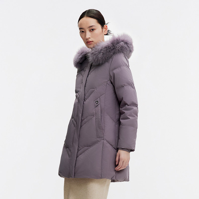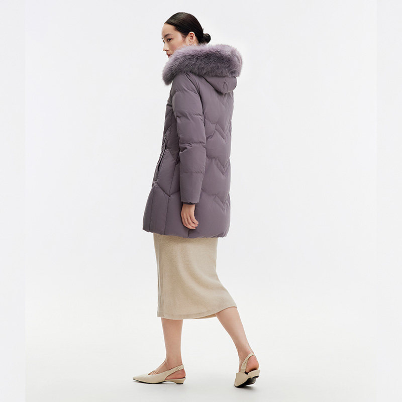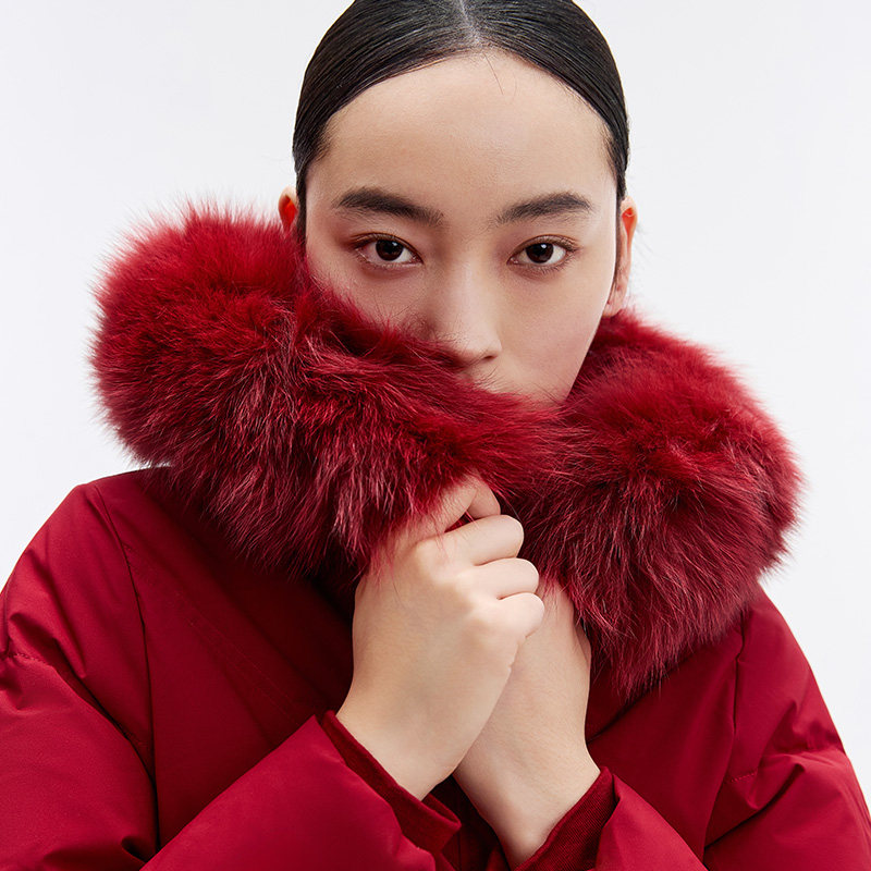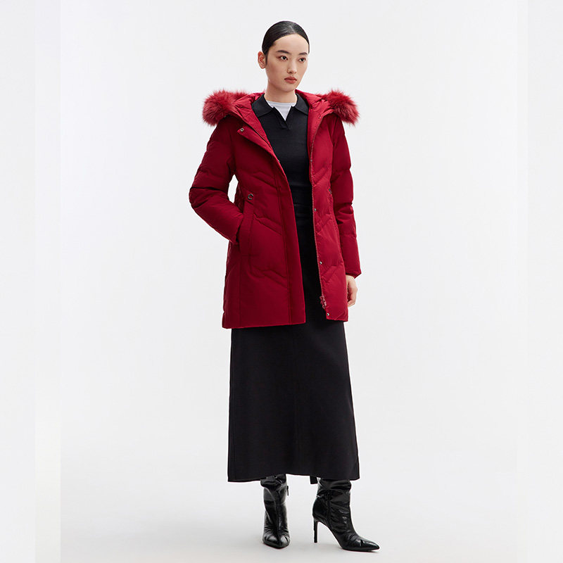 千仞岗冬季中长款连帽狐狸毛领中老年女羽绒服外套新红送妈妈款