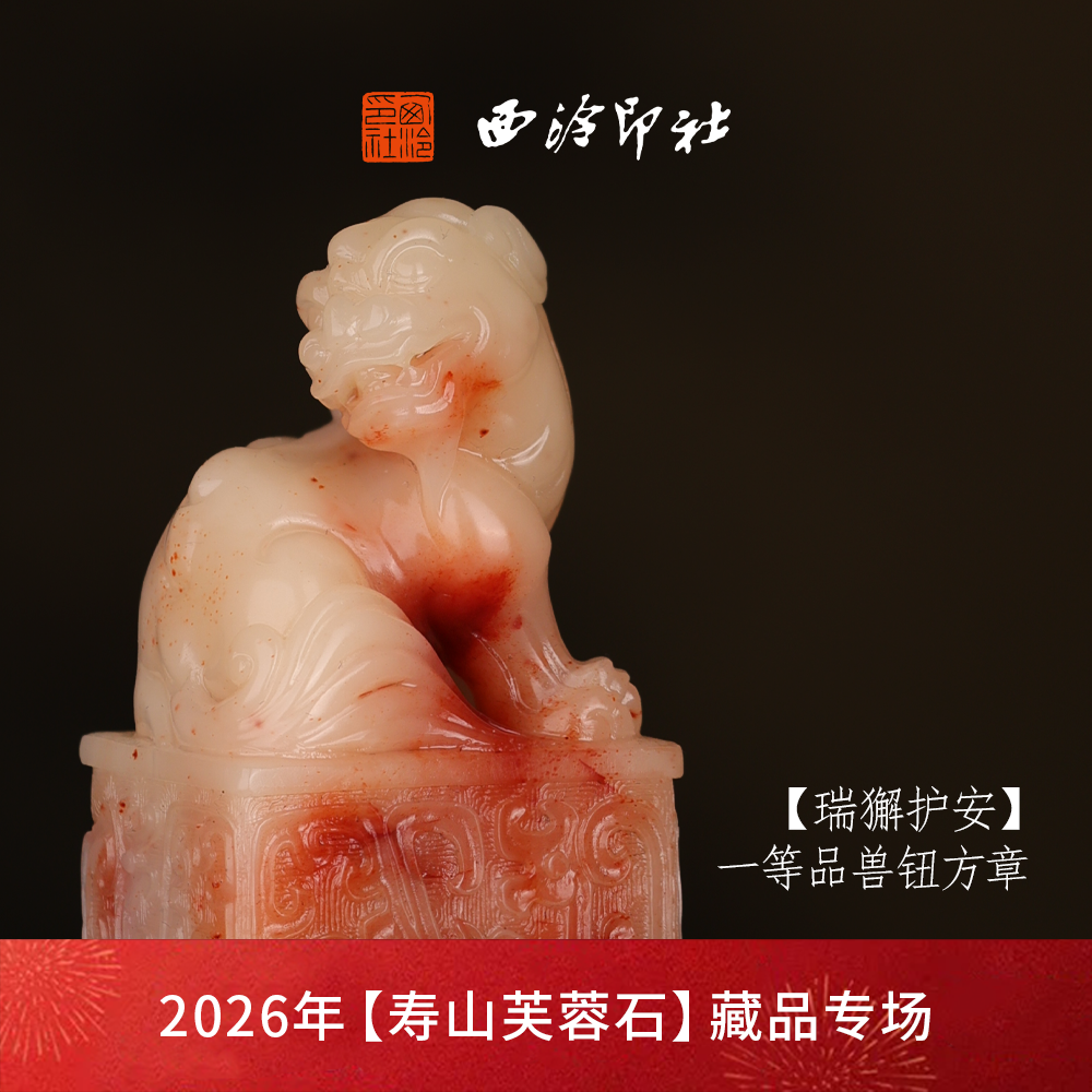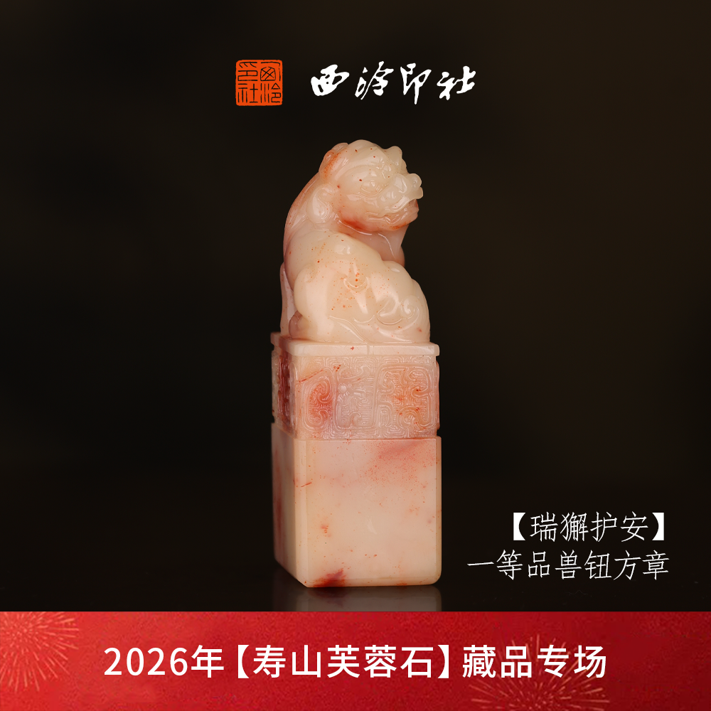 【一等品】西泠印社寿山芙蓉石兽钮方章《瑞獬护安》高档石材印章书法国画手工篆刻玉石方章定制落款孤品章