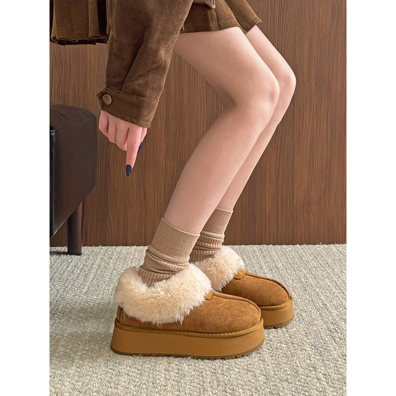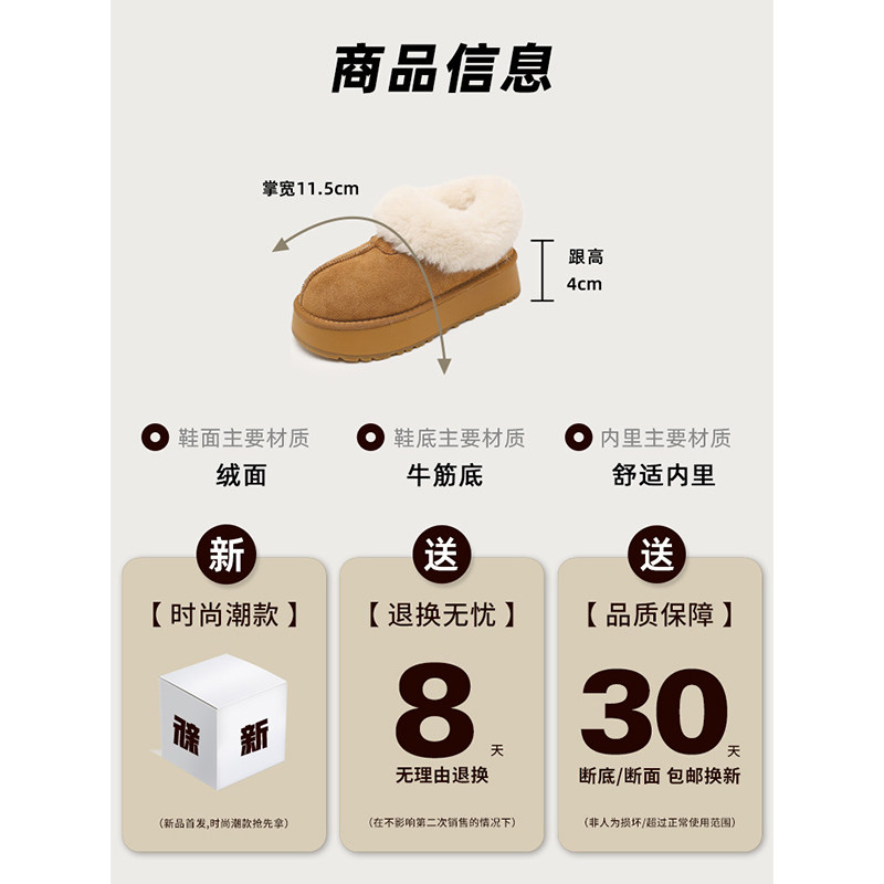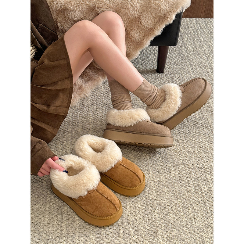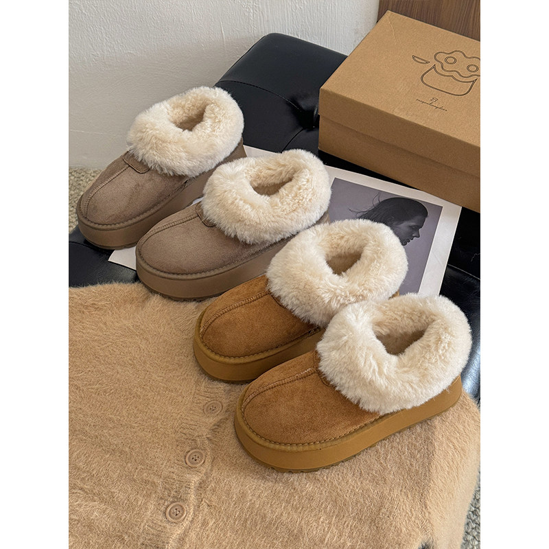 低帮厚底雪地靴女2025新款冬季懒人一脚蹬毛毛棉鞋加绒加厚女鞋子