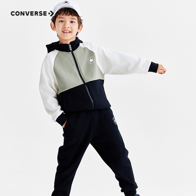 匡威男童加绒套装儿童装2025冬季中大童休闲运动夹克长裤两件套