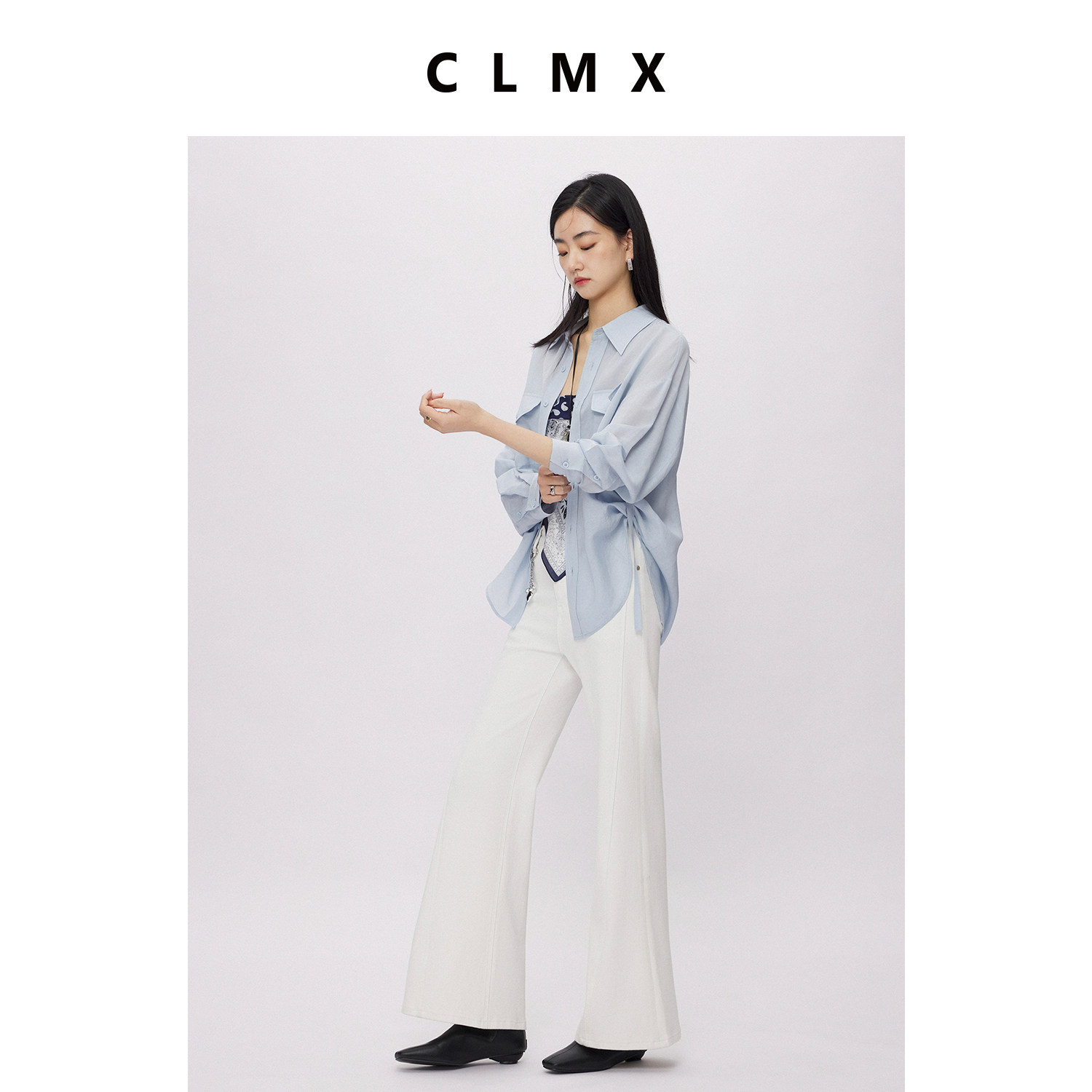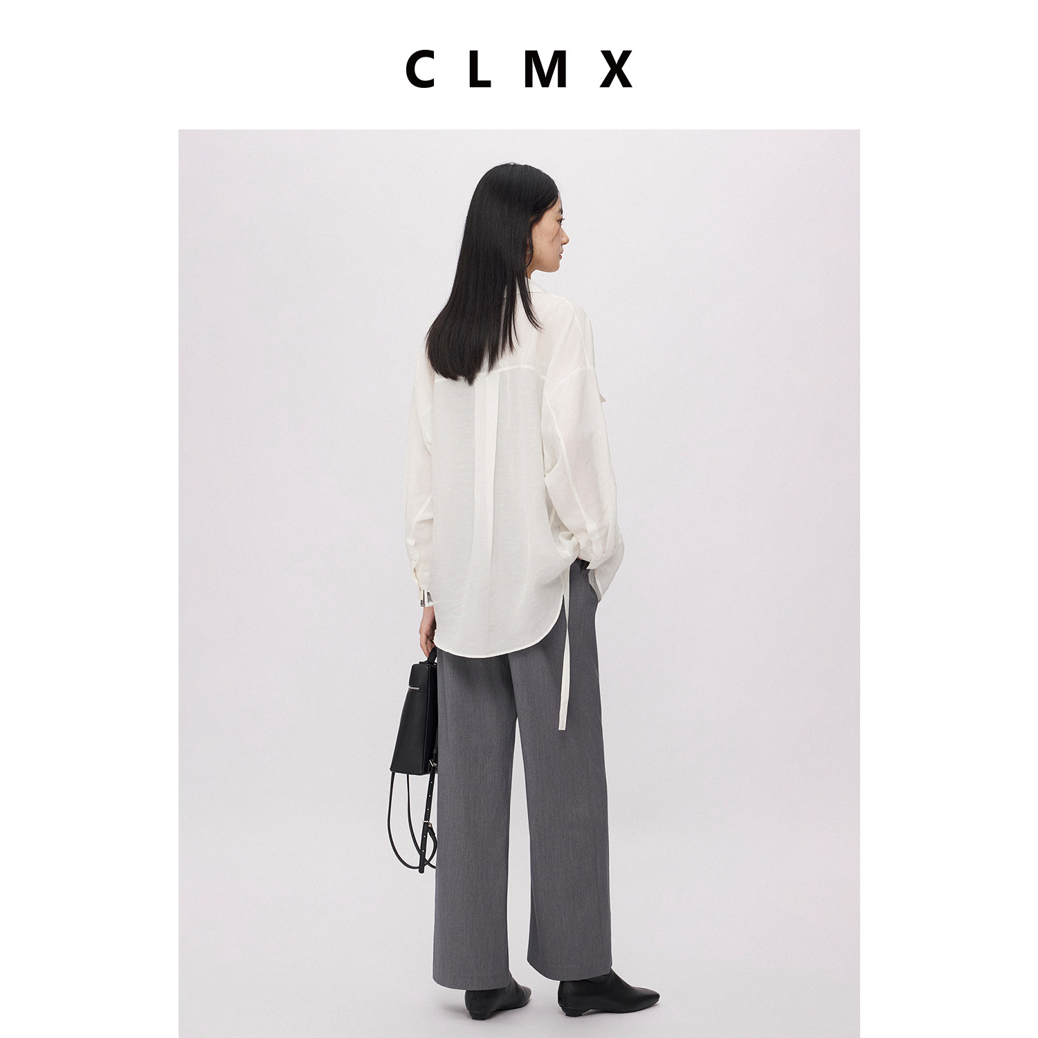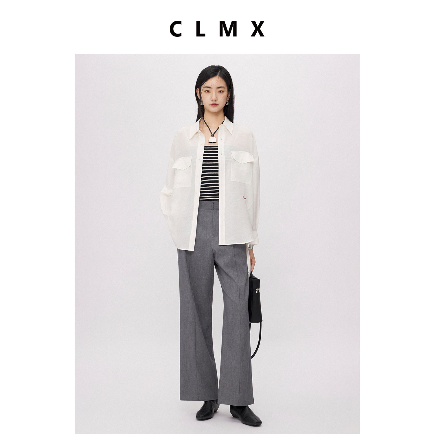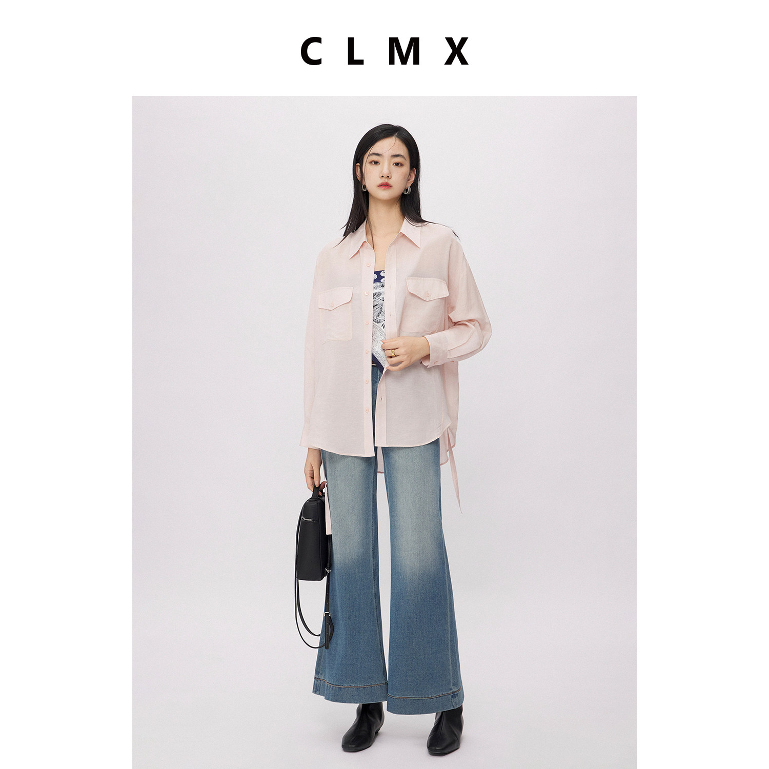CLMX轻薄肌理感亚麻莱赛尔衬衣女春季翻领贴袋高级外搭衬衫上衣