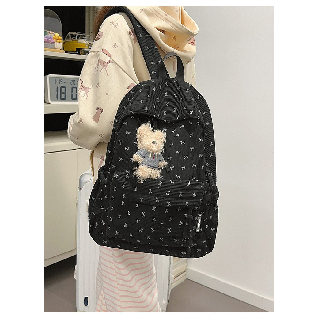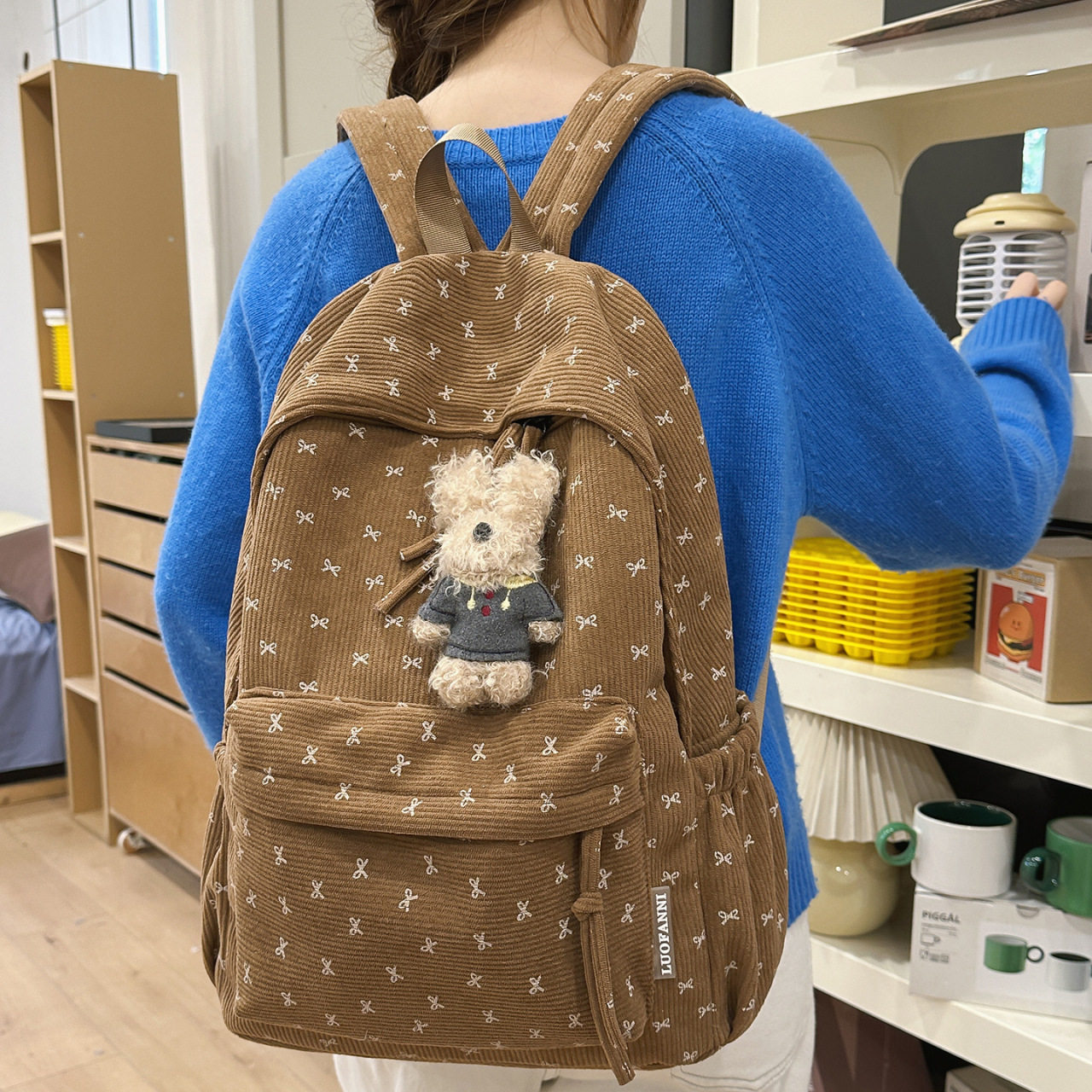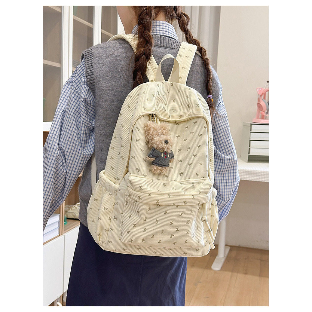 稻草人春季新款韩系甜美风蝴蝶结少女出游背包高颜值中学生双肩包