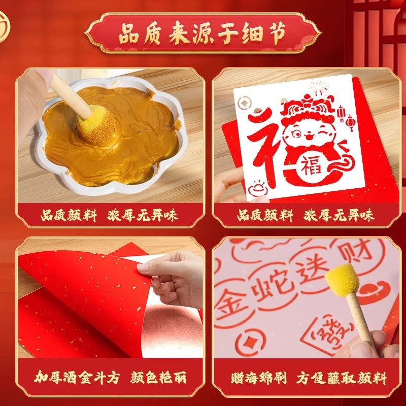 2026年新年福字海绵拓印棒模版工具手工diy材料包全套装非遗年画春联儿童绘画宣纸幼儿园亲子制作装饰品玩具3