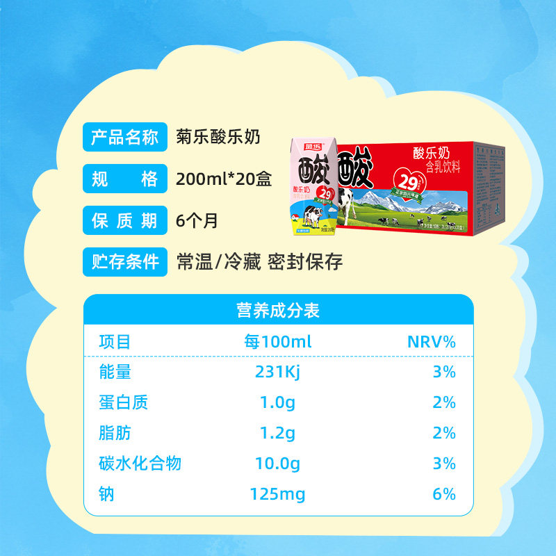 菊乐酸乐奶200ml*20盒早餐奶儿童学生牛奶整箱含乳饮料四川味道