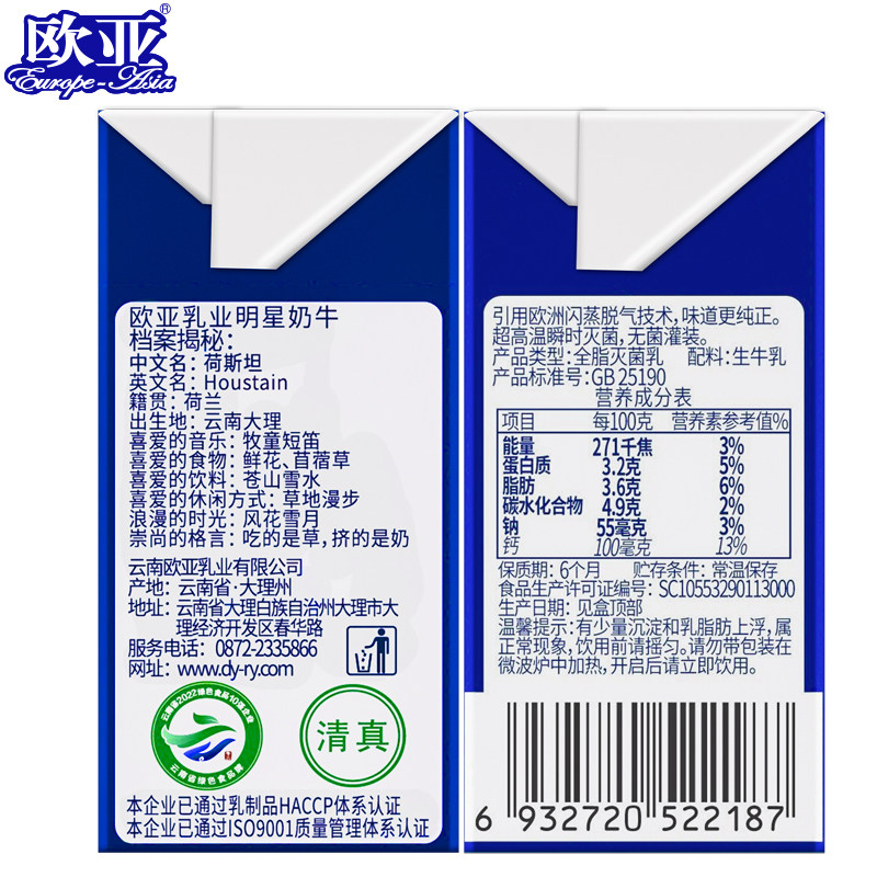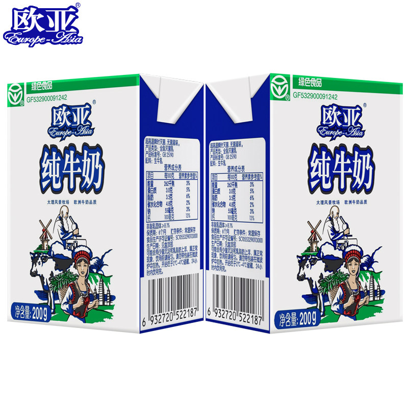 欧亚纯牛奶高原全脂200gx20盒整箱营养早餐乳制品生牛乳学生全脂