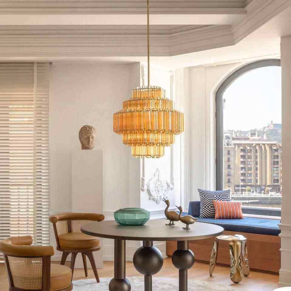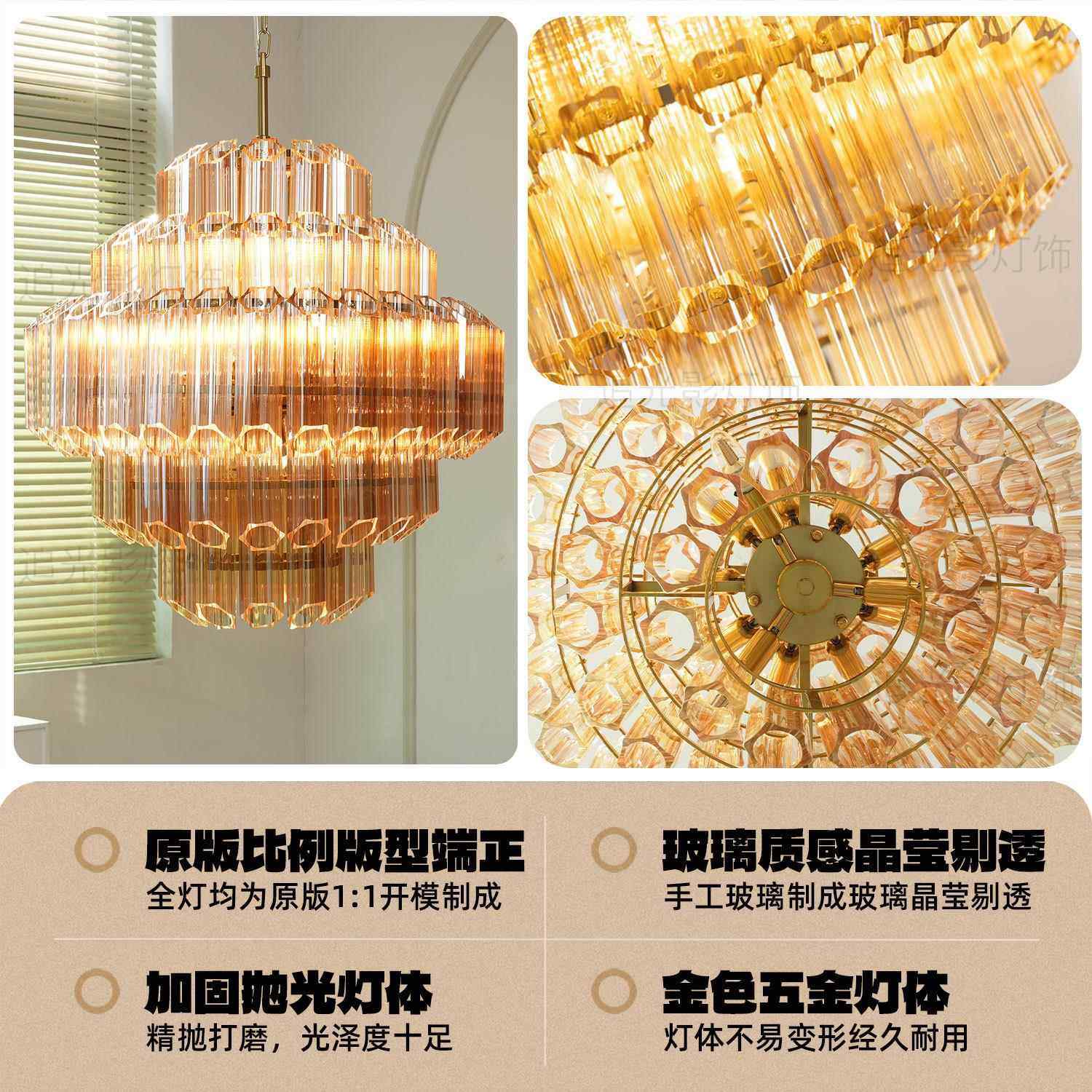 2025设计师客厅跃层挑空复式楼新款别墅轻奢玻璃楼梯穆拉诺灯法式