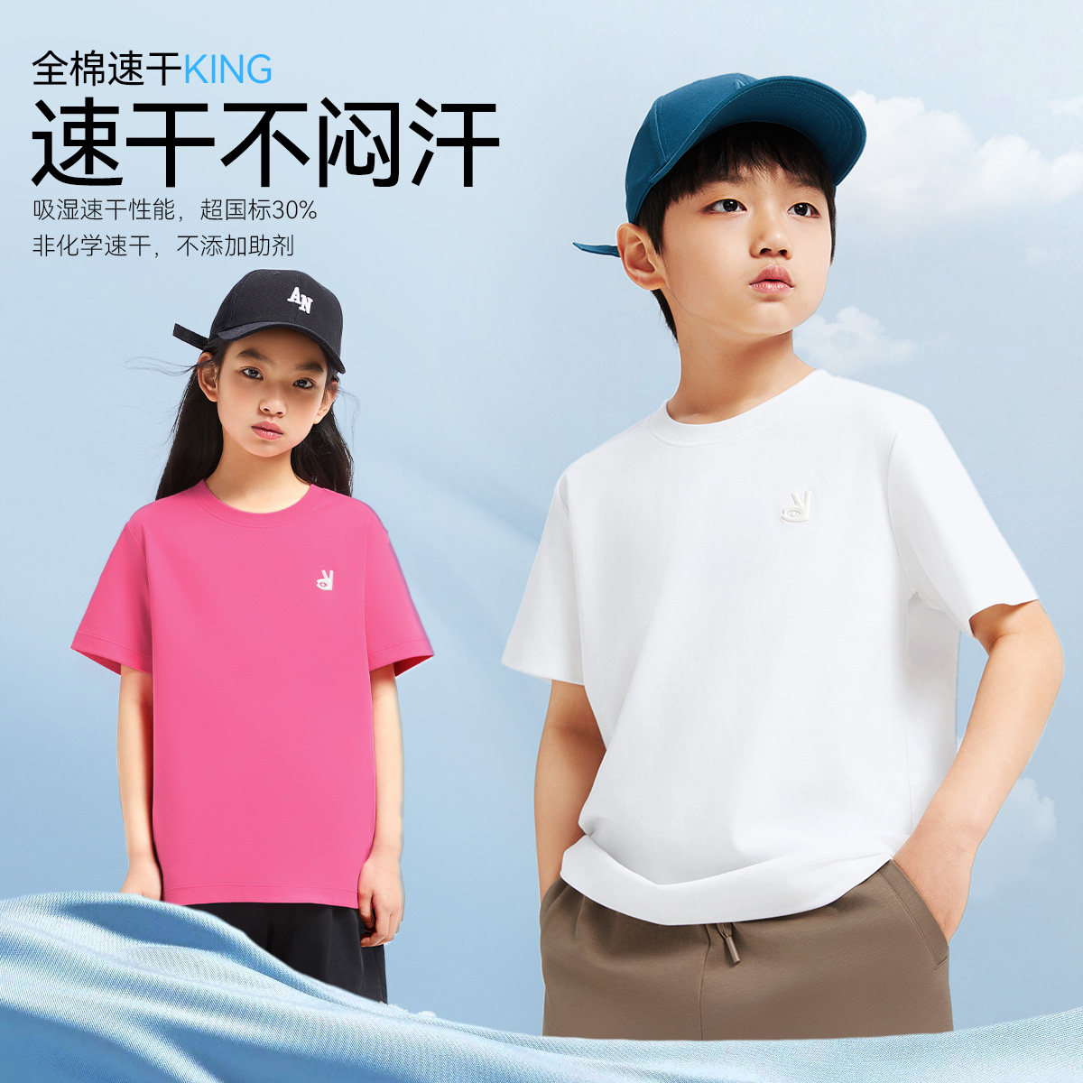 【夏款超舒衣】安奈儿童装男童女童短袖T恤透气速干休闲时尚纯棉