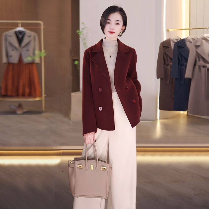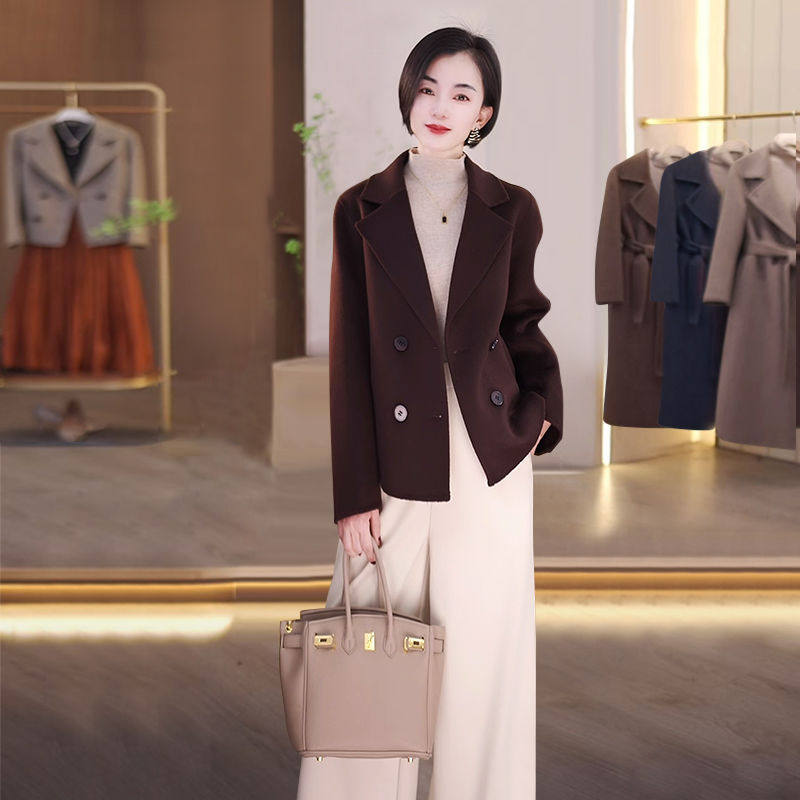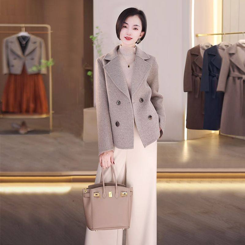 反季清仓秋冬双面羊绒大衣女简约高端气质款小个子西装毛呢外套