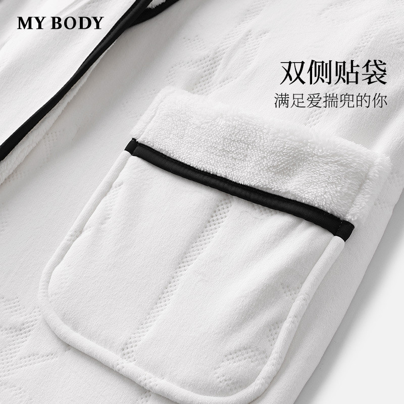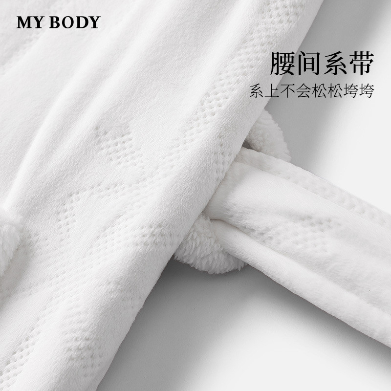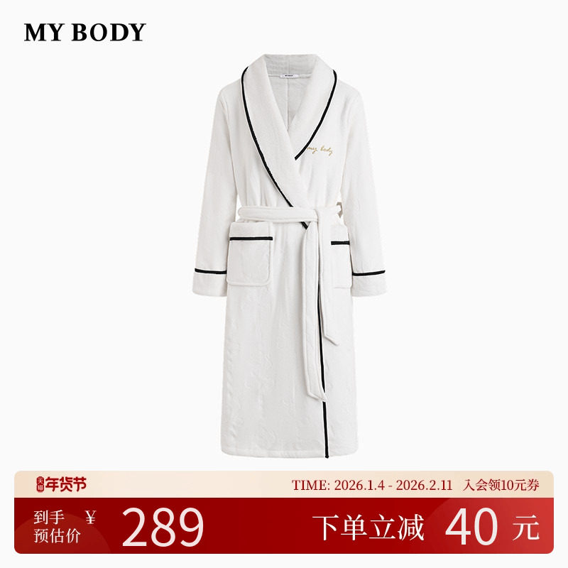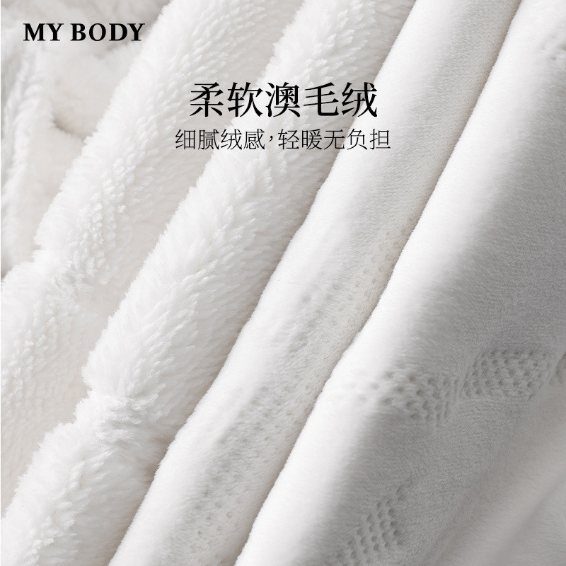 商场同款MYBODY冬季新款睡袍气质青果领柔软澳毛绒暖暖系带浴袍女