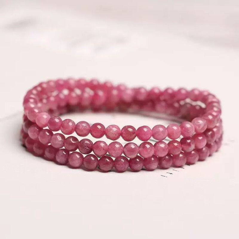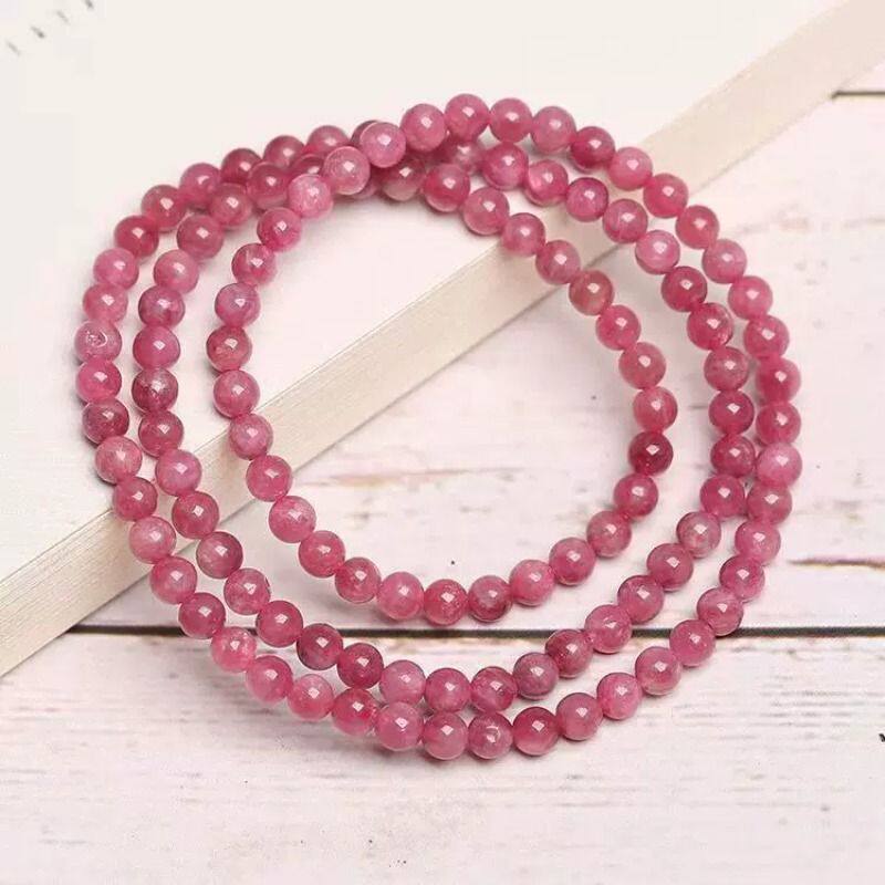 天然红碧玺手链三圈粉色碧玺桃花饰品多圈手串多层女礼物