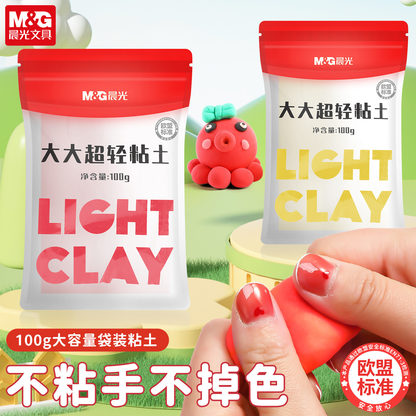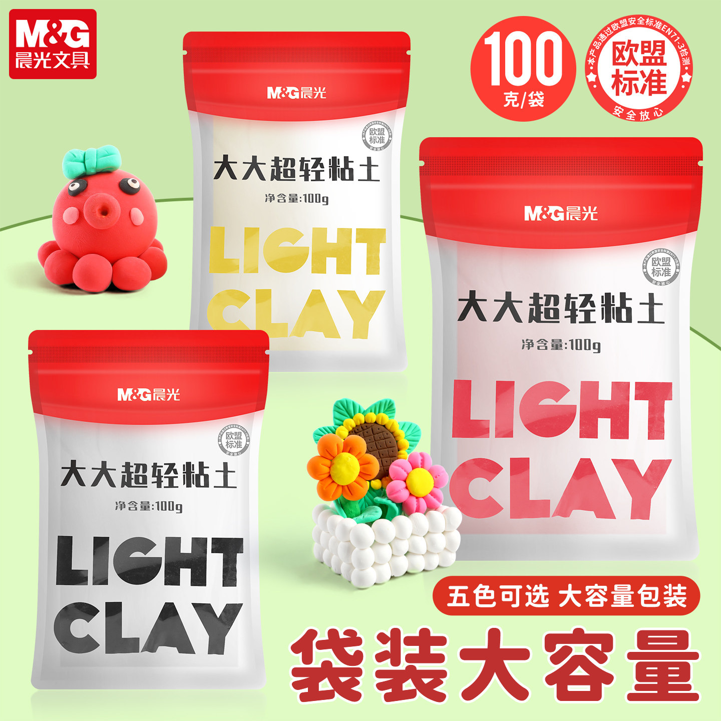 晨光超轻粘土大容量装儿童安全100g克白色黑色大包装彩泥橡皮泥太空泥白色黏土幼儿园小学生专用手工diy材料