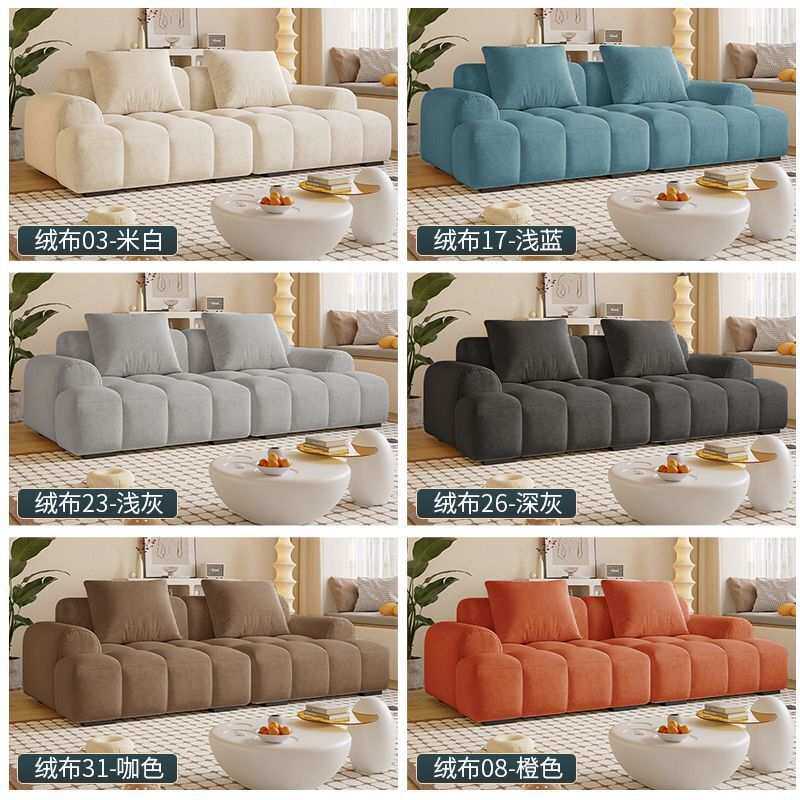 奶油风猫抓皮ins泡芙沙发客厅轻奢出租屋公寓直排小户型皮艺沙发