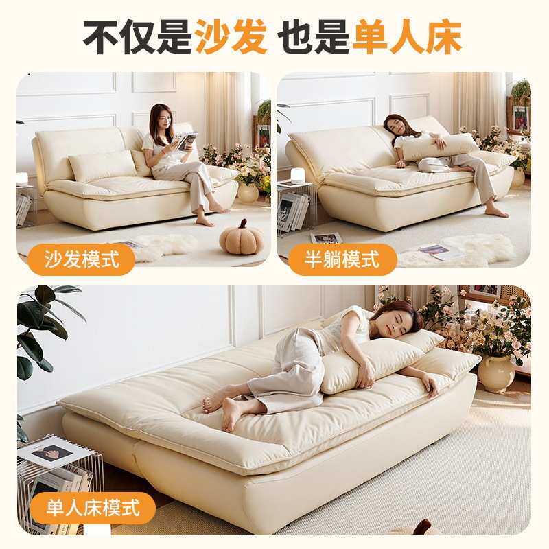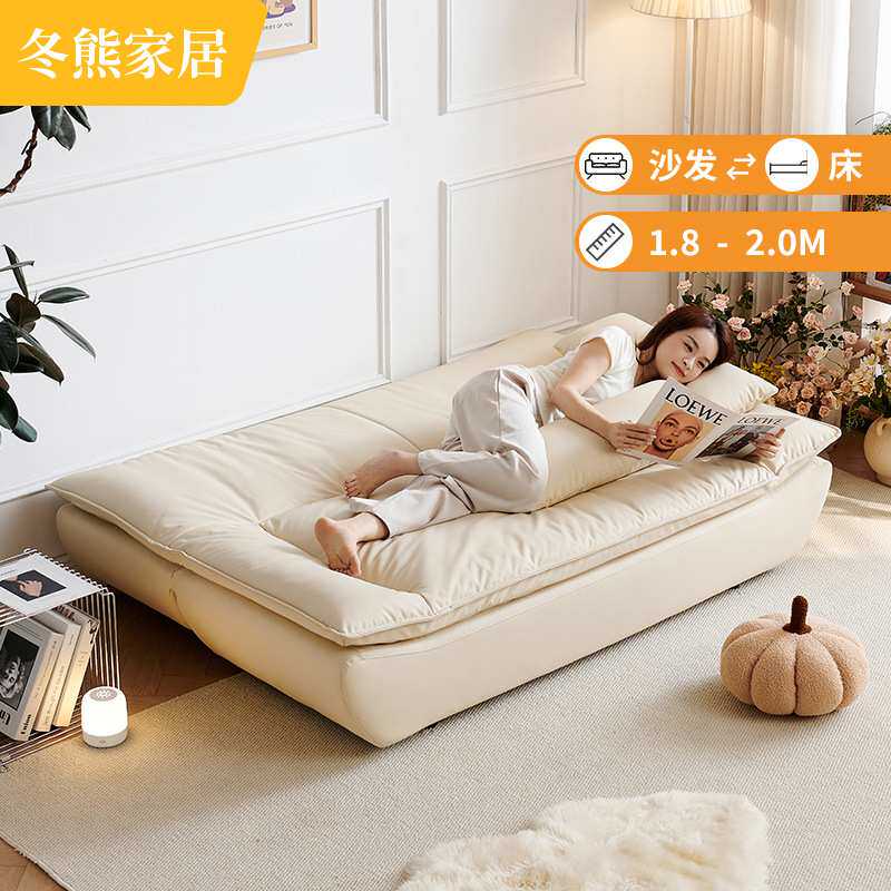 冬熊法式奶油风休闲沙发可折叠两用小户型双人客厅皮艺帆船沙发床