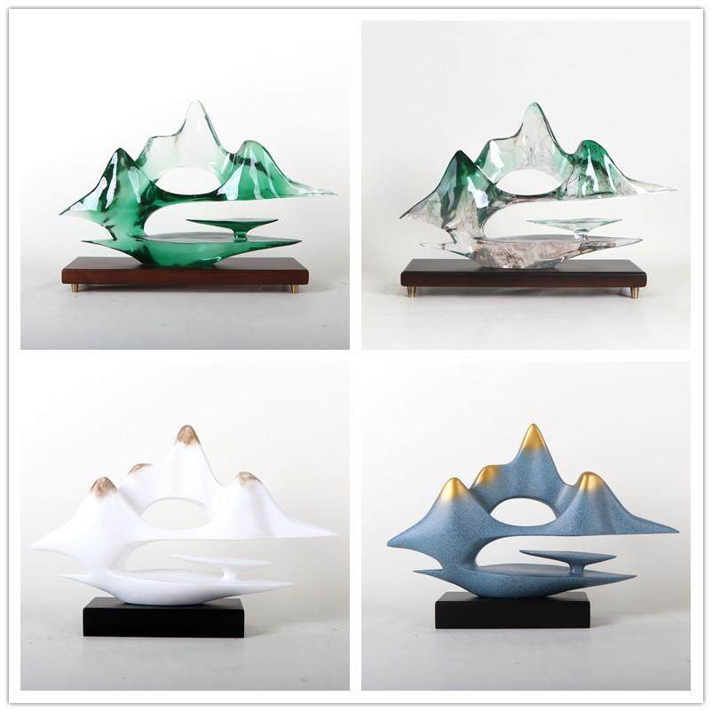 新中式办公室云山雕塑样板间茶室家居软装饰品客厅电视柜玄关摆件