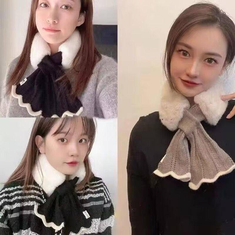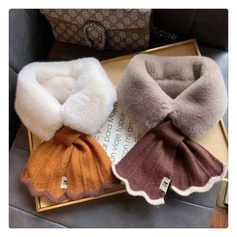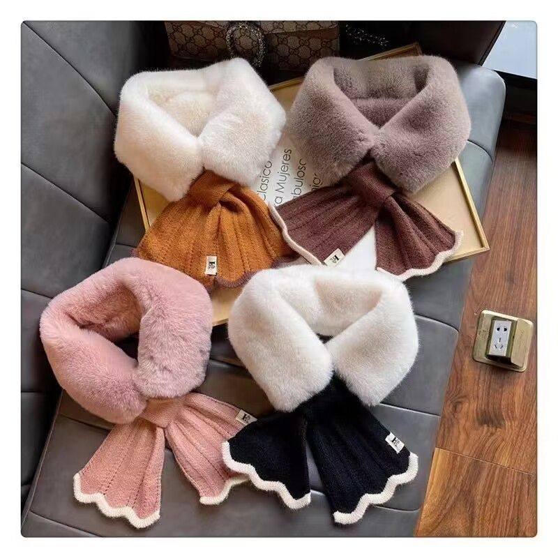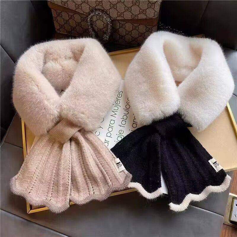 美人鱼秋冬季冬季围巾韩版加厚保暖可爱獭兔毛绒护颈领子交叉围脖