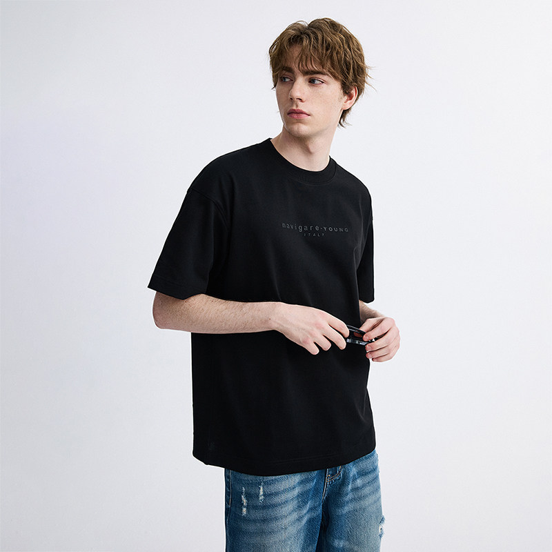 [重磅t]Navigare意大利小帆船黑色字母T恤男夏季短袖体恤纯棉上衣