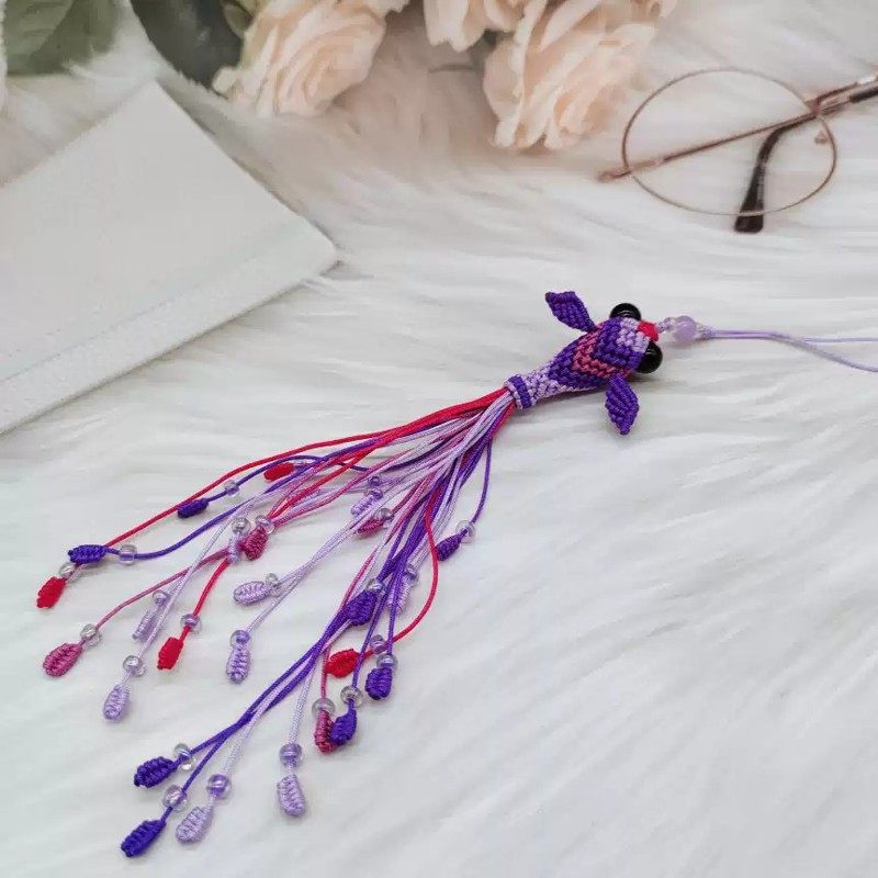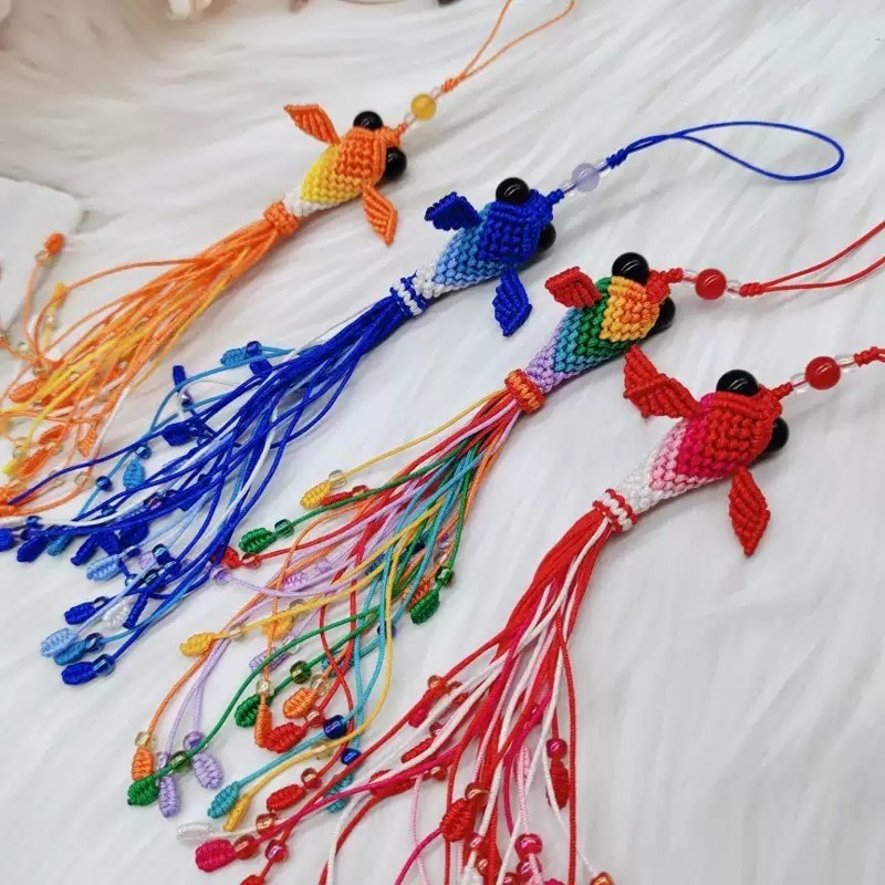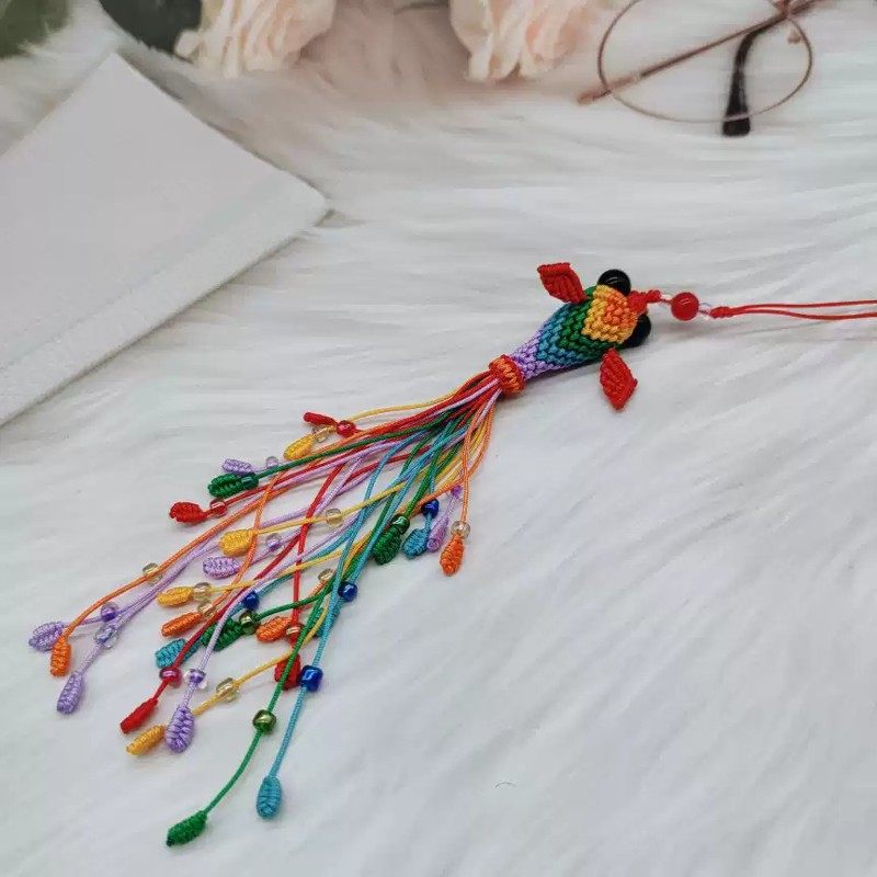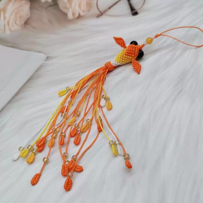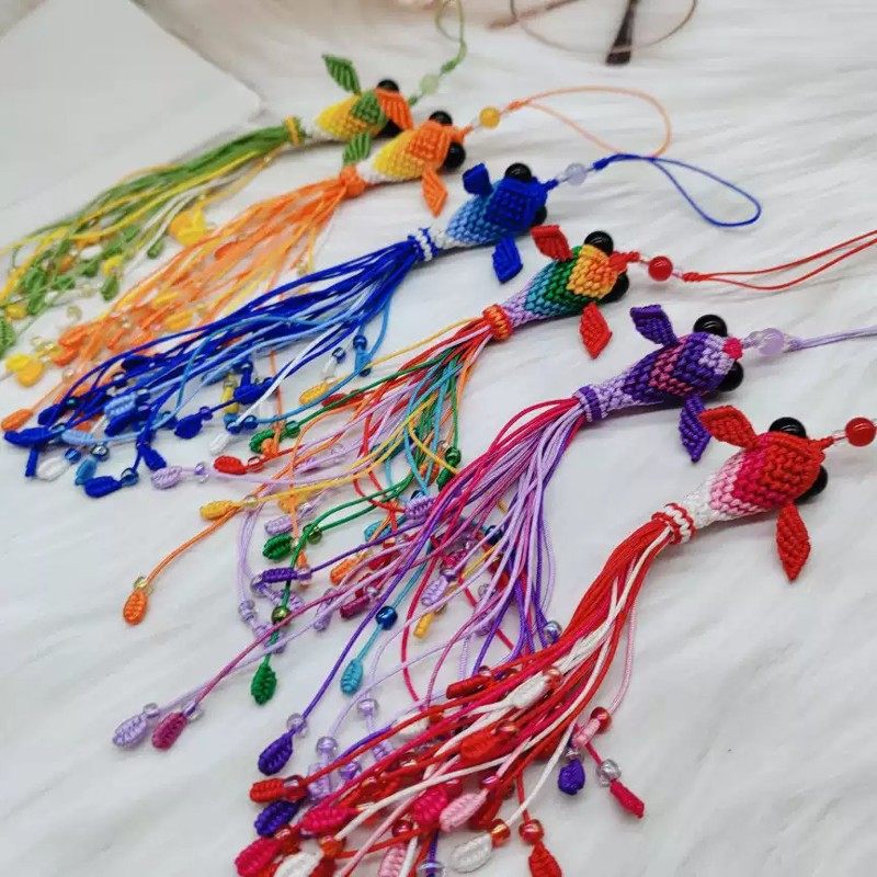 成品纯手工编织玉线编织彩色金鱼流苏凤尾结手机链钥匙扣包挂U盘