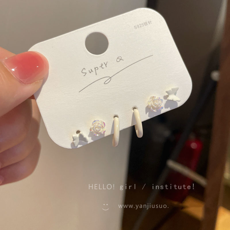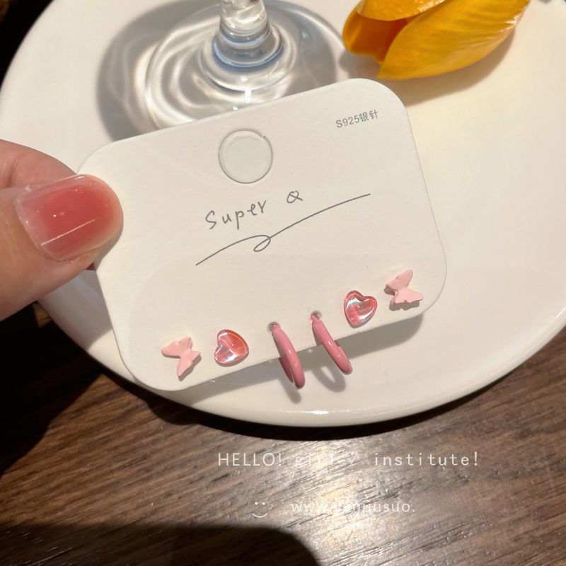 夏季甜美爱心蝴蝶花朵耳钉女ins风小众设计感耳饰小清新套装耳环