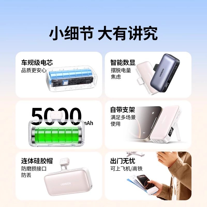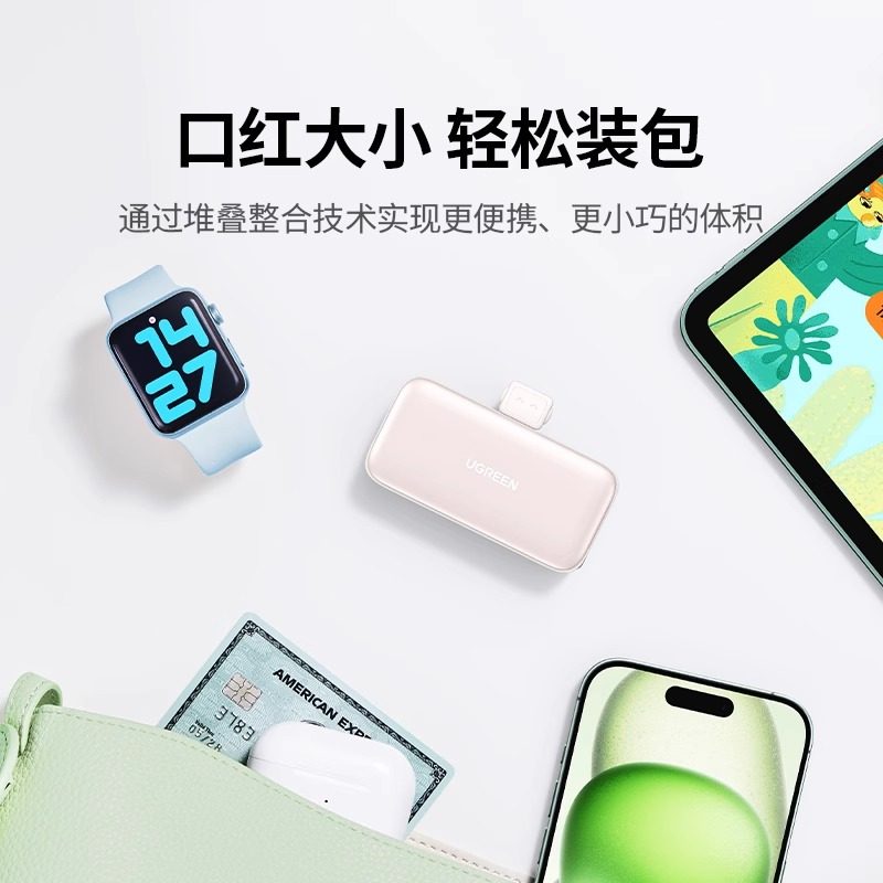 【3C认证】绿联2025新款胶囊充电宝小巧便携5000毫安适用于iPhone17pro16max手机迷你口红式无线快充移动电源