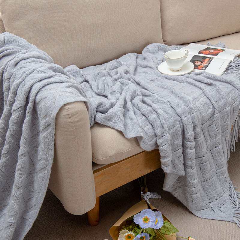 CC1毛圈菱形休闲毯四季针织线毯民宿床位搭毯酒店床毯几何毯子